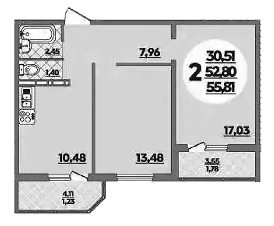 Общая площадь55,81 м2