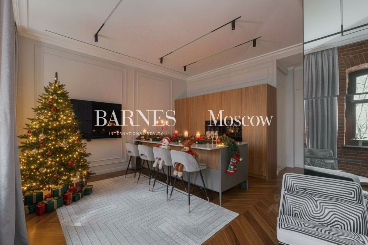 ID: 577023 Эксклюзив Barnes Исключительно красивый 4-комнатный апартамент площадью 117.9 кв.м. с новой отделкой в современном стиле на 3-м этаже в клубном доме премиум-класса Il Ricco на Чистых прудах.