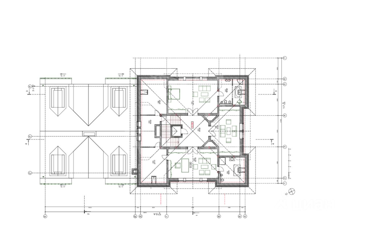На втором этаже 2 мастер-спальни с санузлами, 2 детские спальни с санузлами, кабинет с с/у, библиотека комната отдыха.