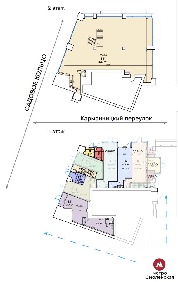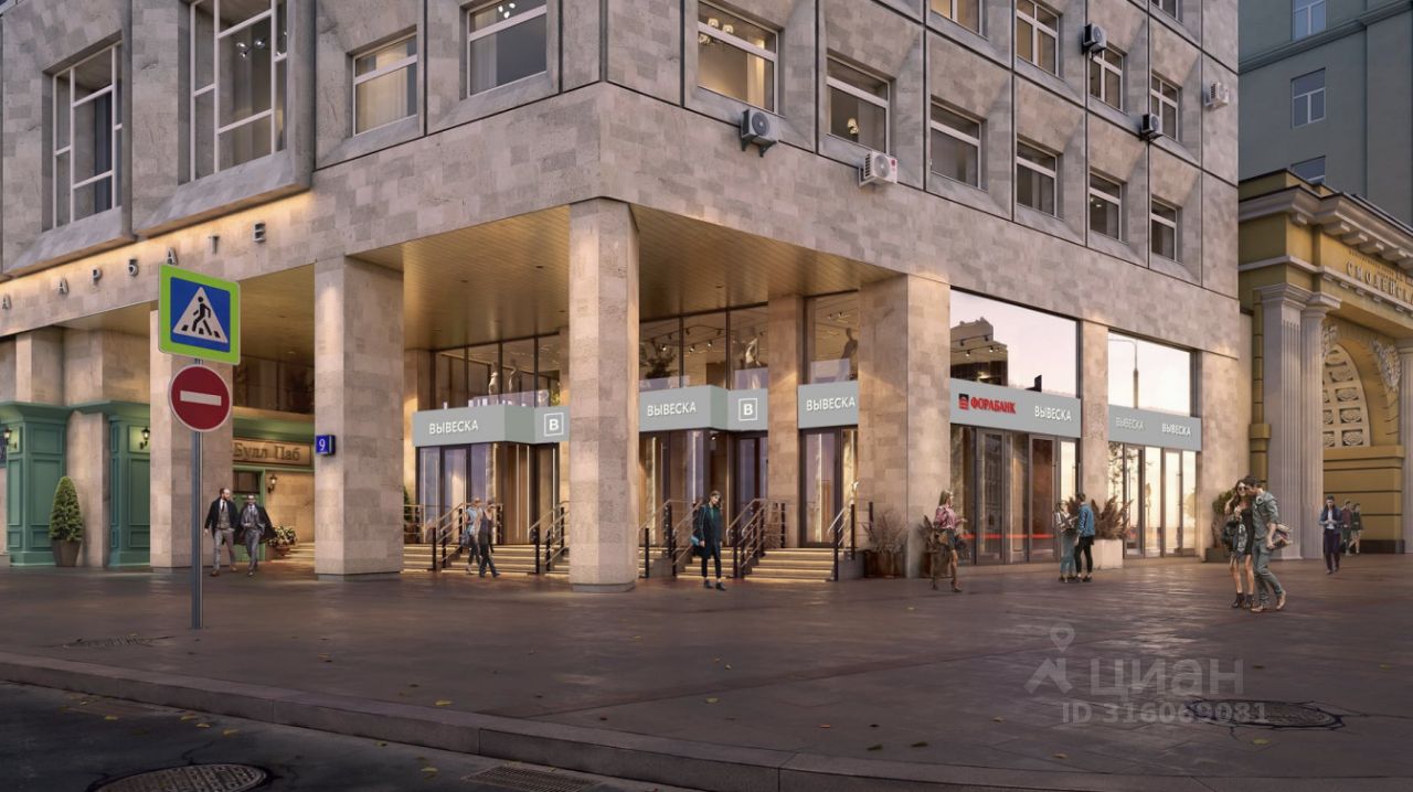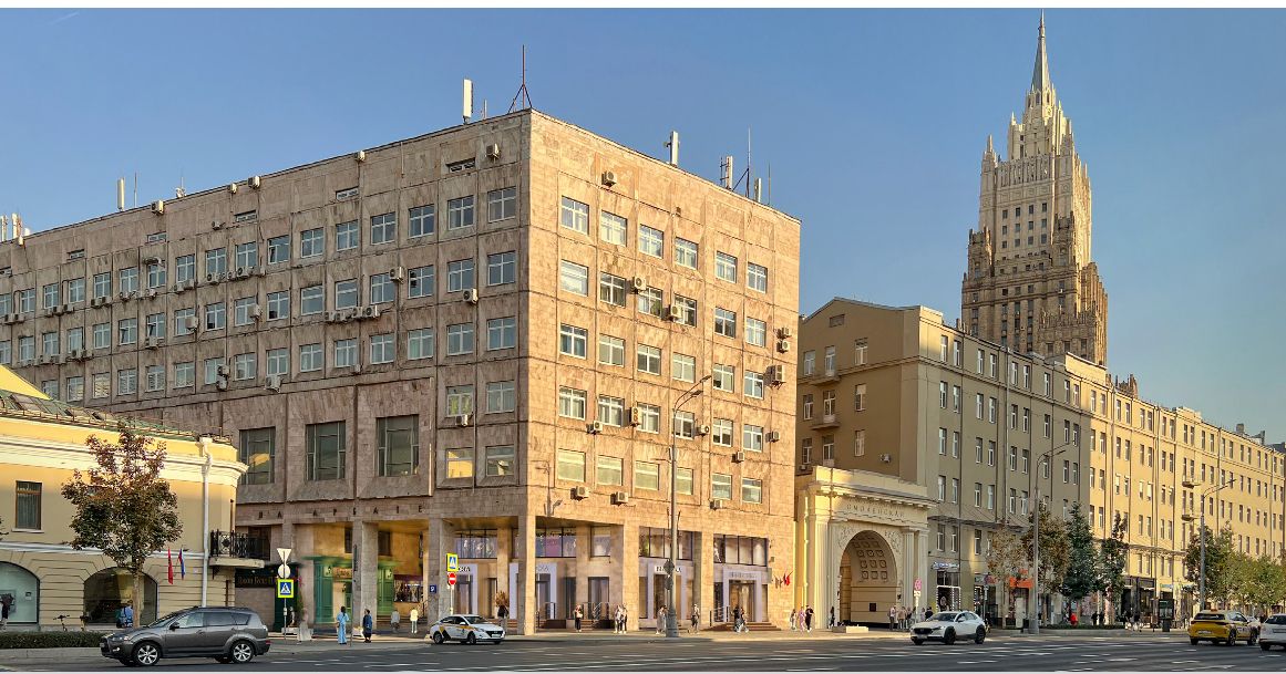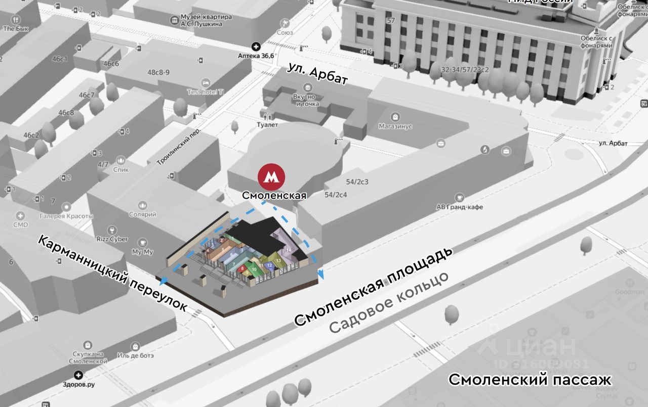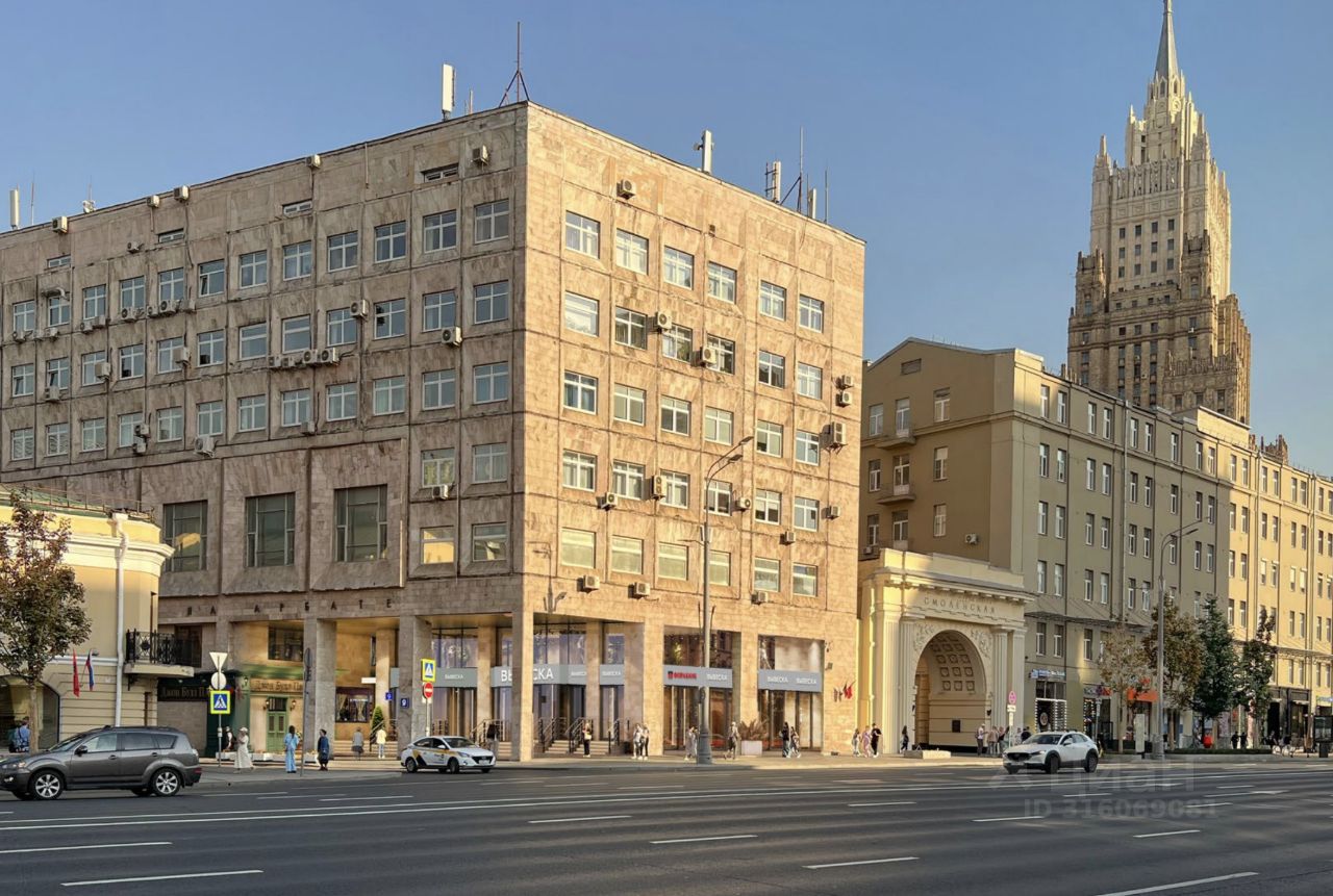 В 20 метрах от выхода из станции метро Смоленская.