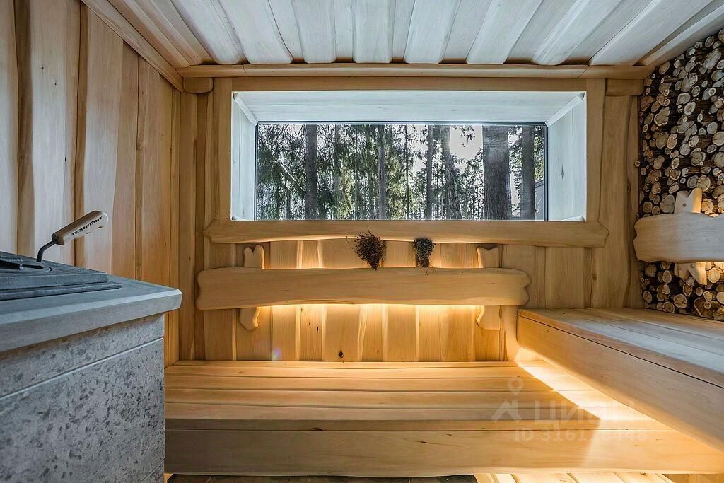 Дом, как и отдельно стоящая баня, предлагается с полной отделкой и мебелью. В интерьере использовались исключительно натуральные и экологичные материалы.
