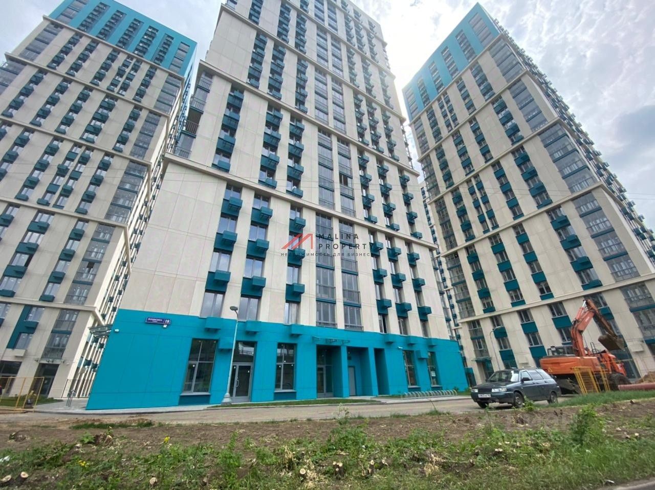 Парковка перед фасадом. Место для размещения рекламы.