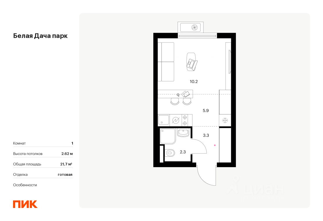 Продаётся квартира-студия площадью 21,7 кв.м на 6 этаже 15 этажного дома (Корпус 16.2, Секция 6) проекта ПИК Белая Дача парк. Светлый просторный подъезд на уровне земли, функциональная планировка, большие окна, c отделкой.