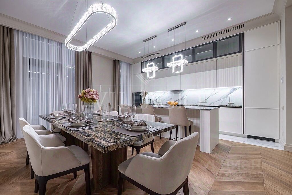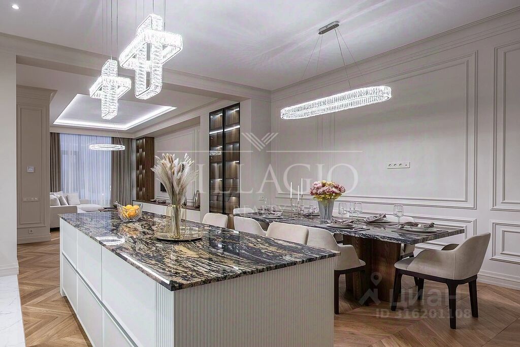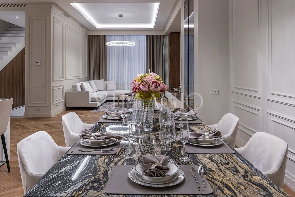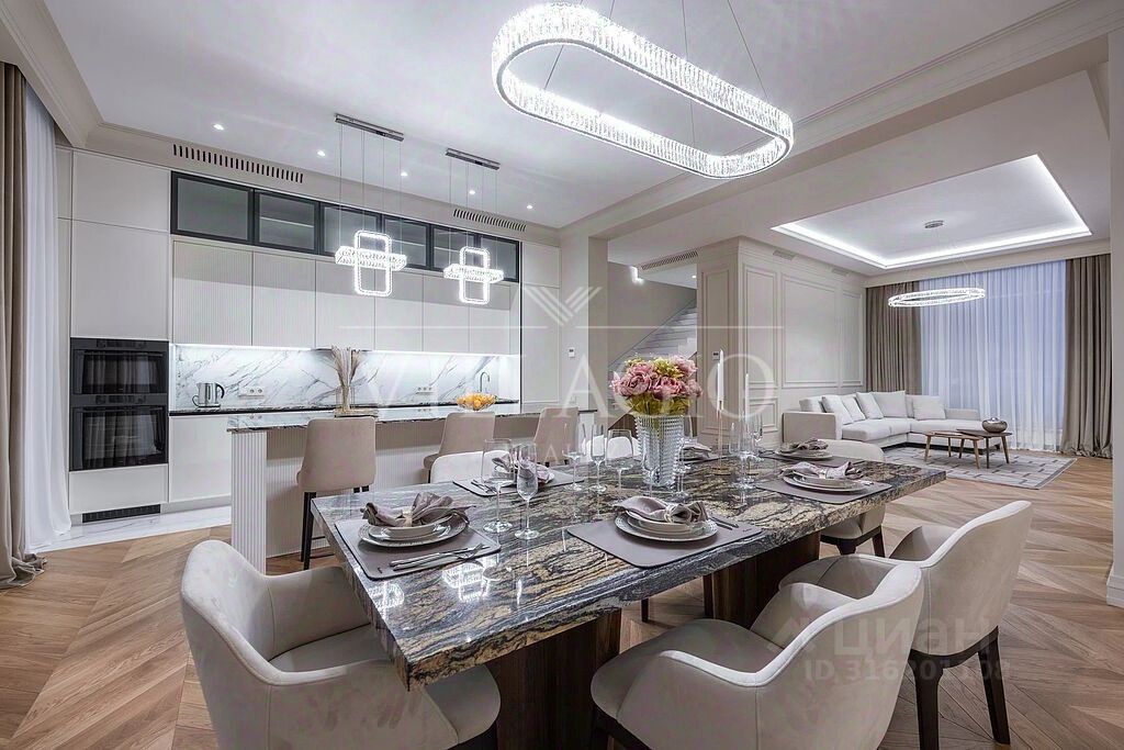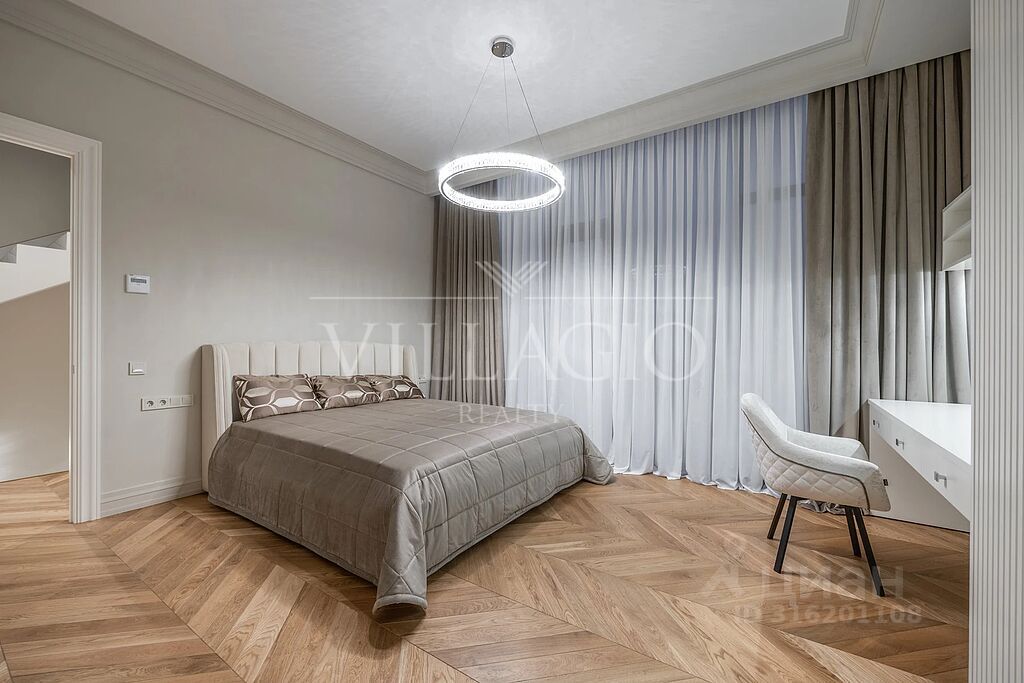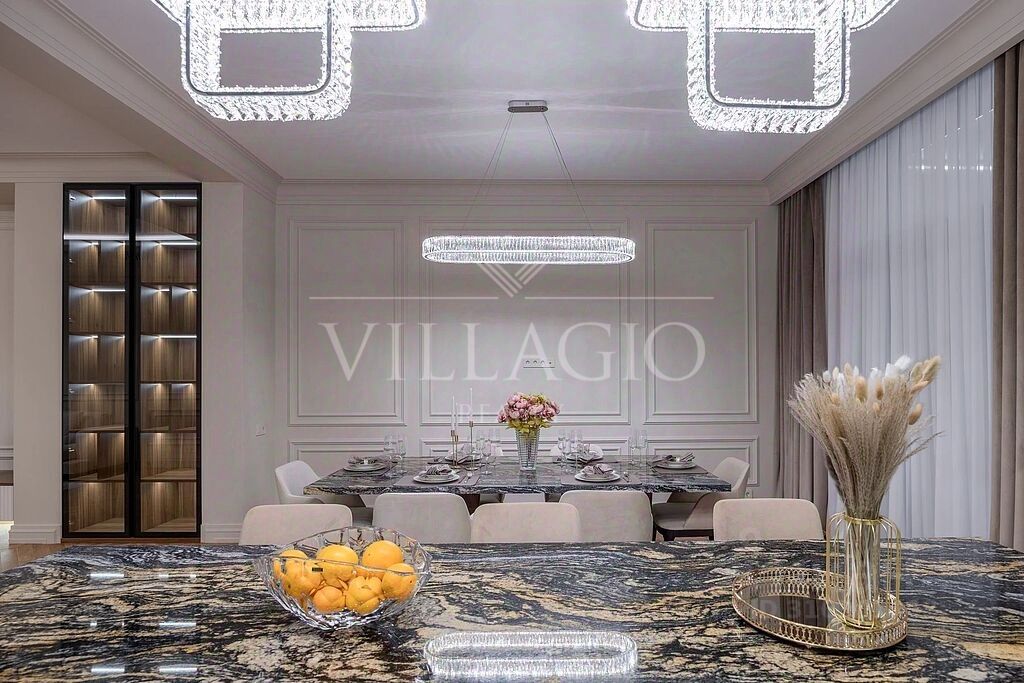 Внутреннее пространство дома выполнено с особым вниманием к деталям. Дизайнерский ремонт в едином стиле создает атмосферу уюта и изысканности. Планировка учитывает все нужды современной семьи - в доме 4 мастер-спальни и большая гостиная.