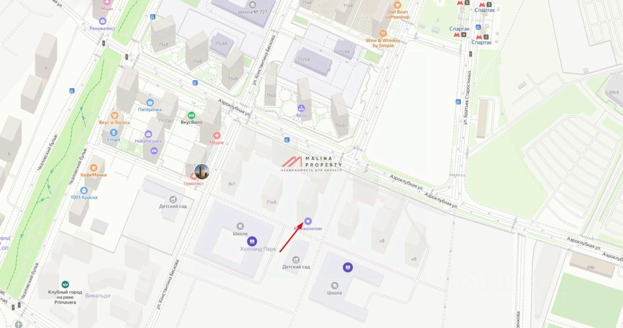 Аренда торгового помещения 55 м2 на Николая Озерова,8к1 (3 минуты пешком от метро Спартак). 1 линия домов.