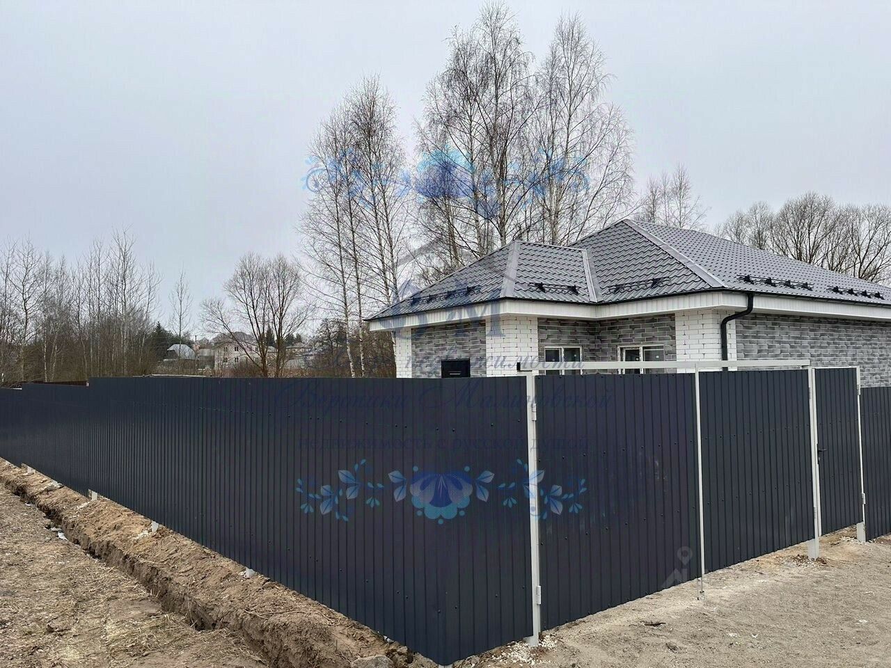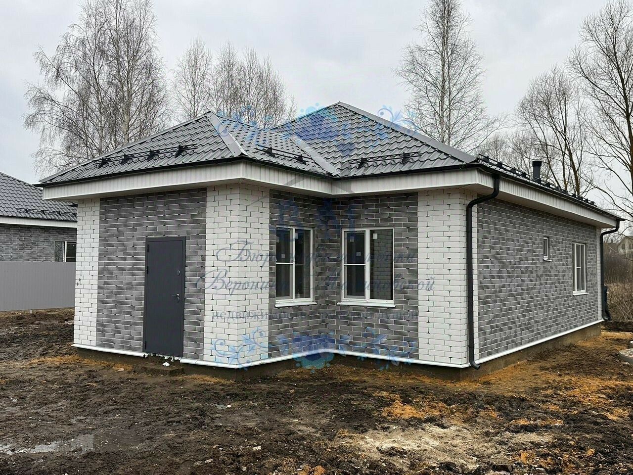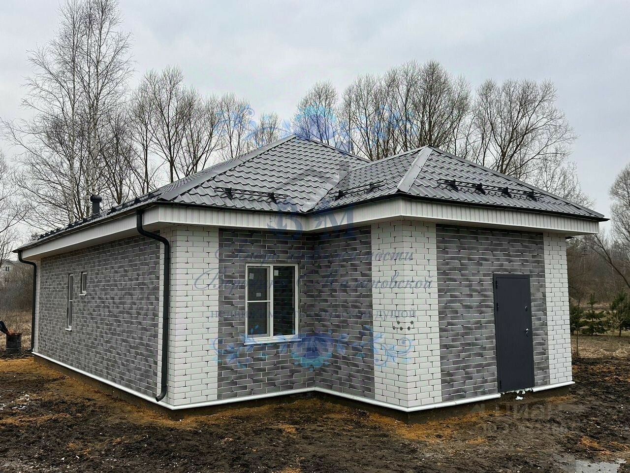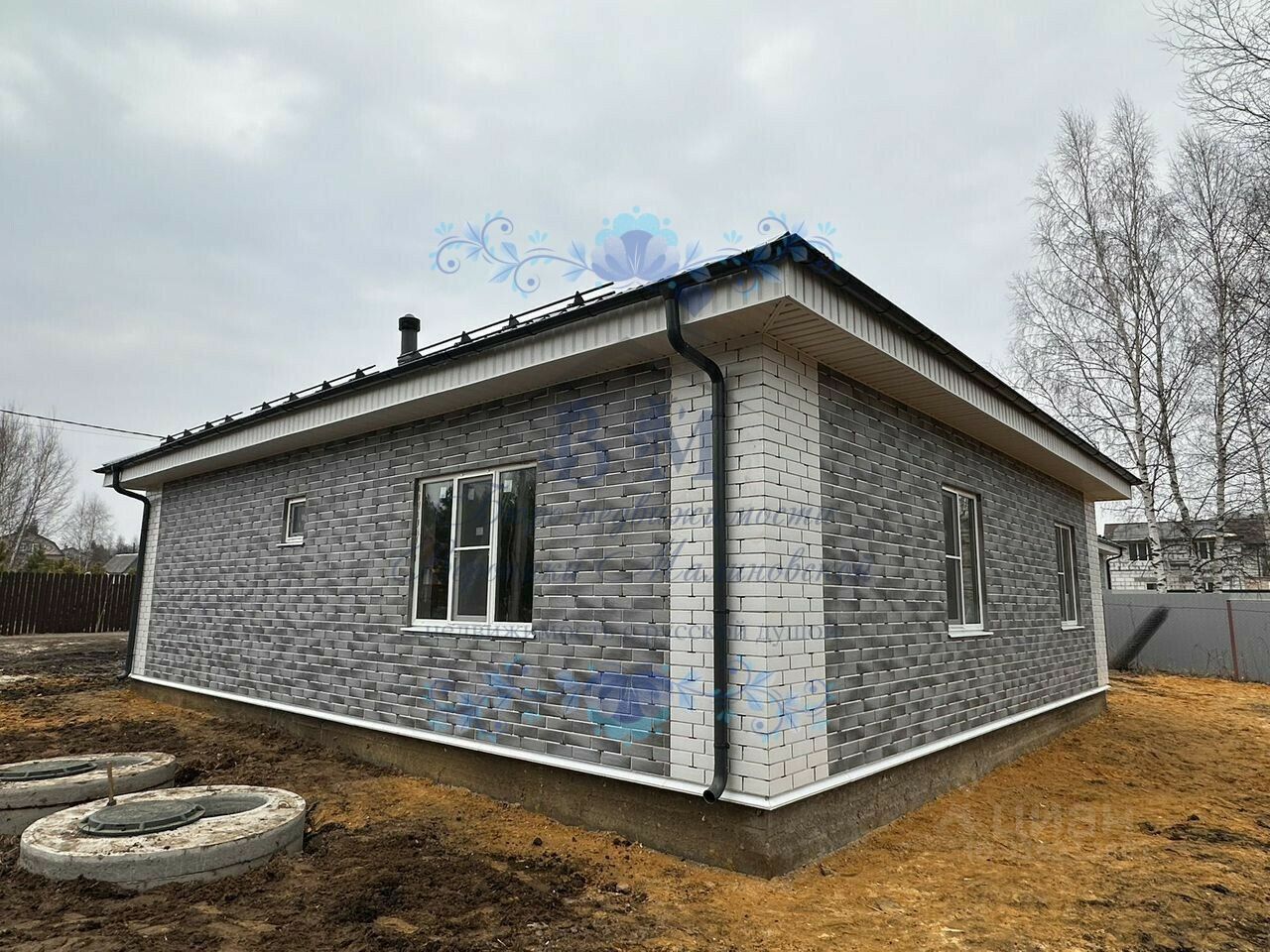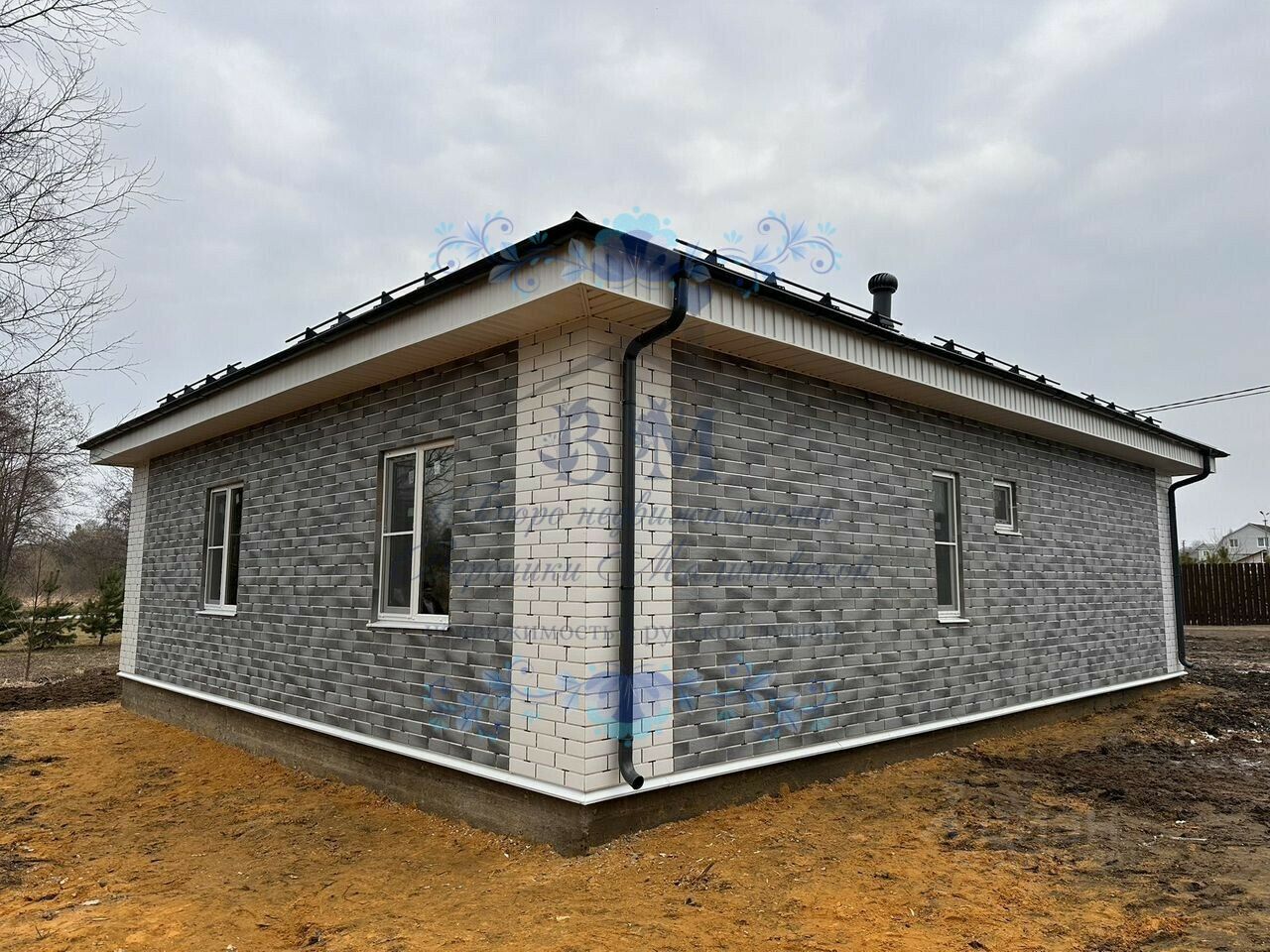Дом построен из газосиликатных блоков с утеплением, фасад термопанели. Крыша металлочерепица с водосточной системой.