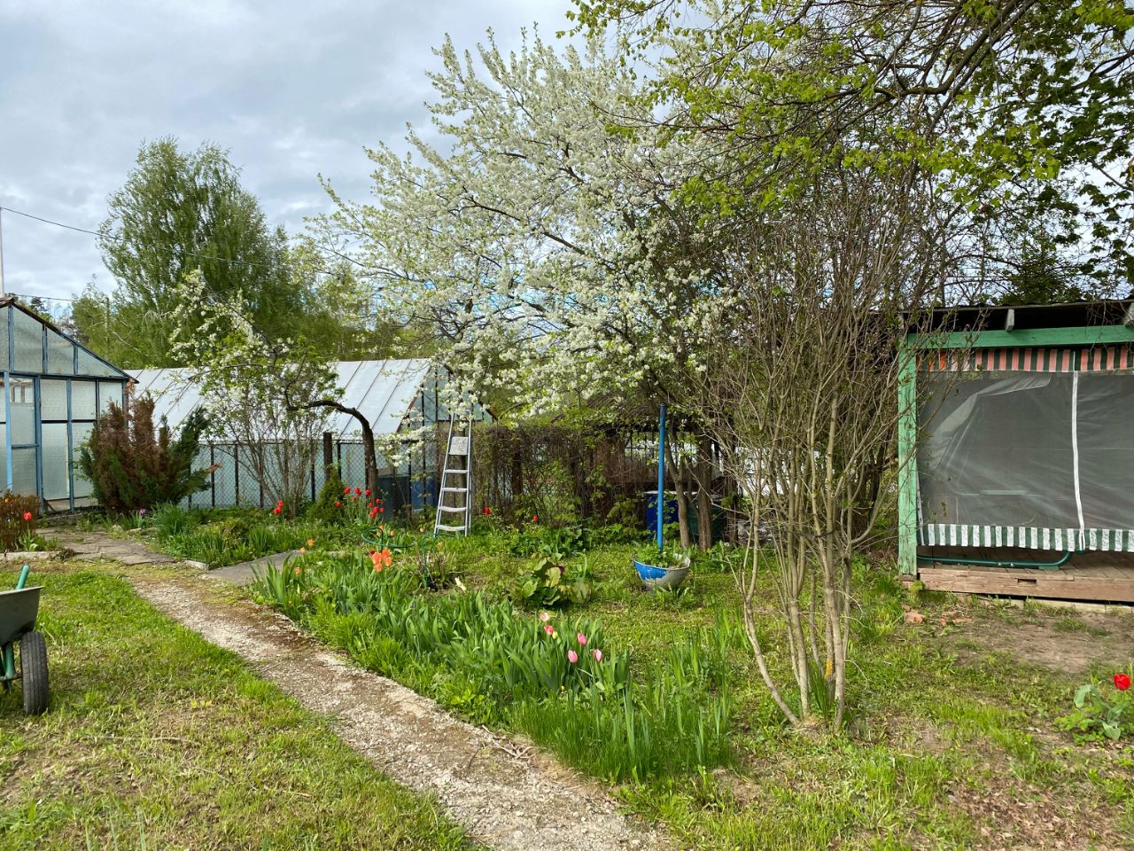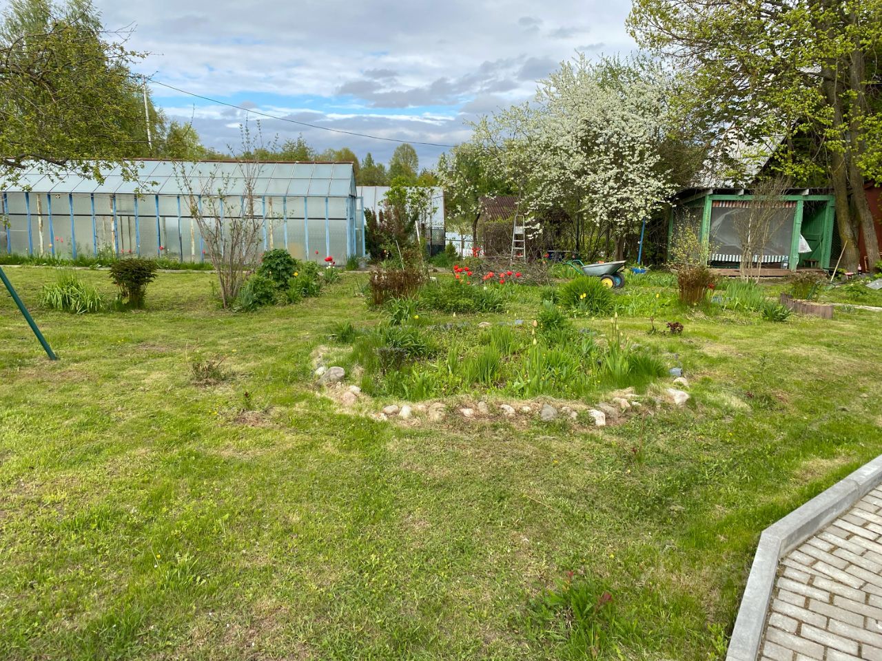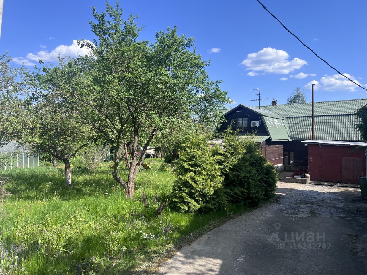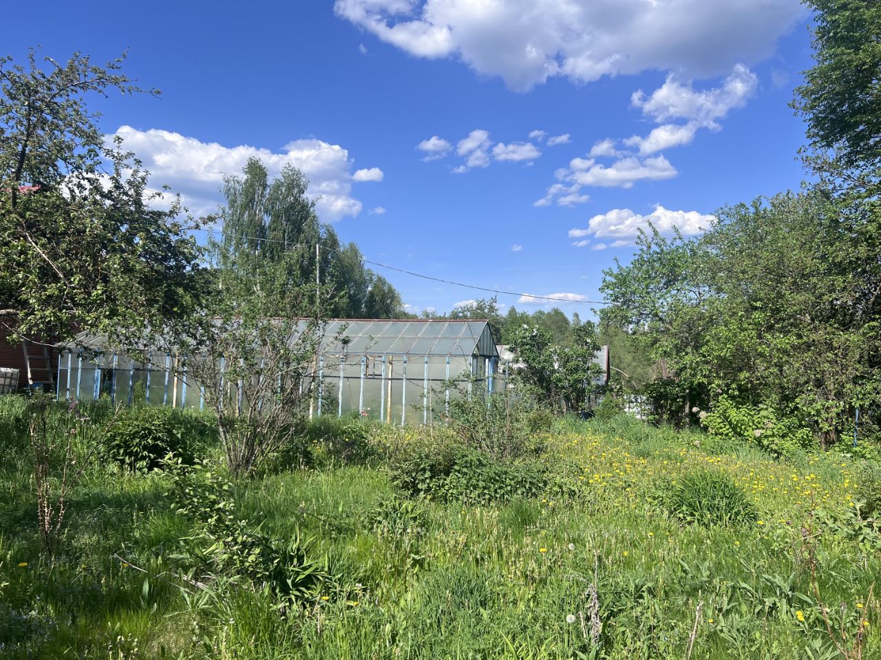 На территории есть гостевой дом, тех. постройки, теплица, высажены деревья и кустарники. Электричество по счётчику.
