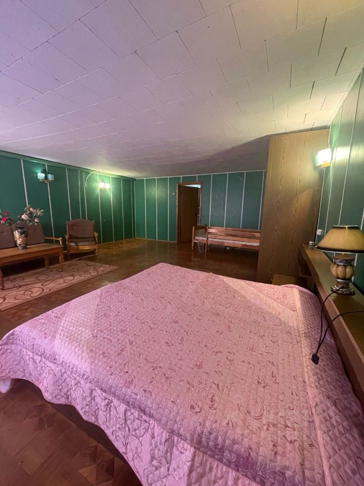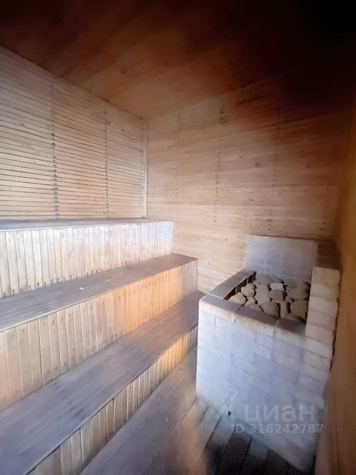 На 1м этаже - кухня , 2 комнаты , сауна, спортивный зал, технические помещения, гараж с ямой. В доме есть печь, электрокотел, камин.
