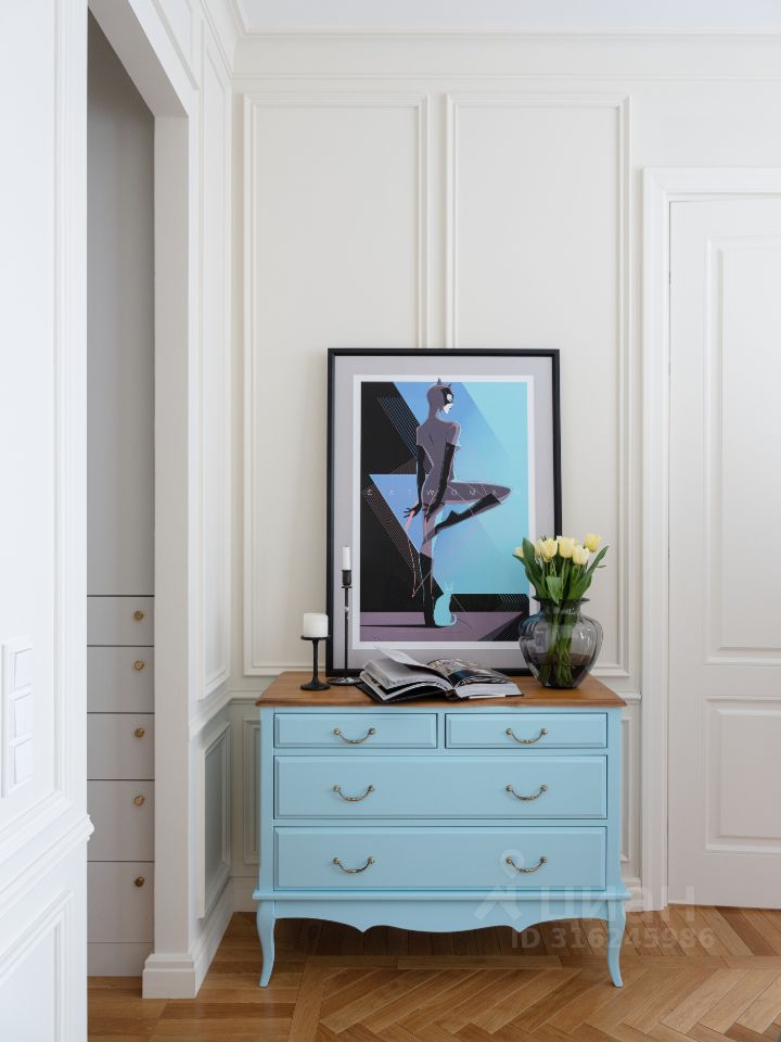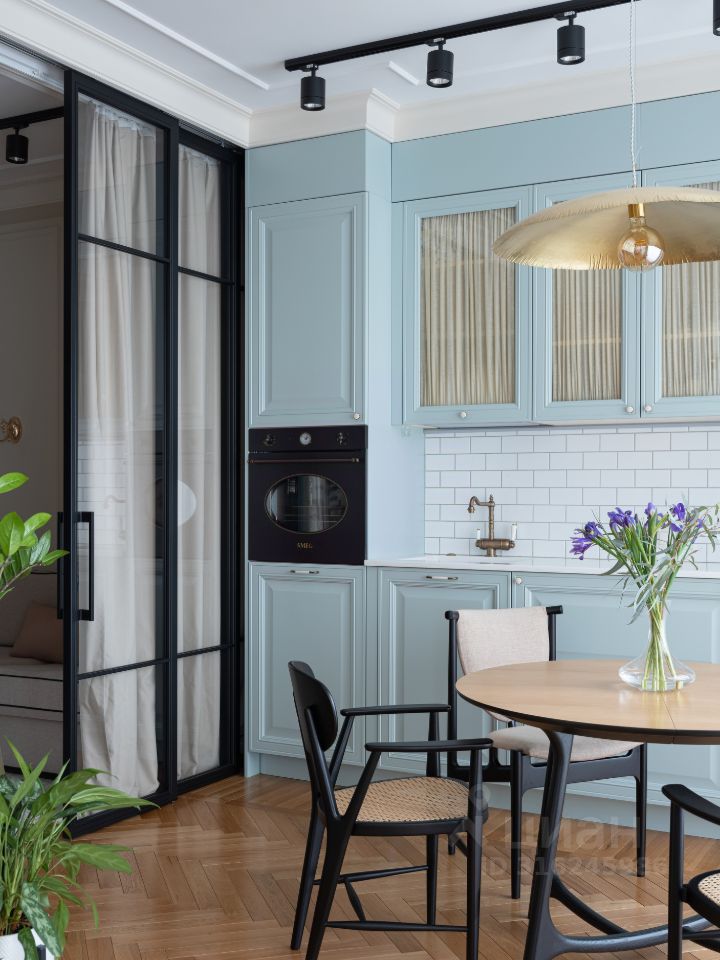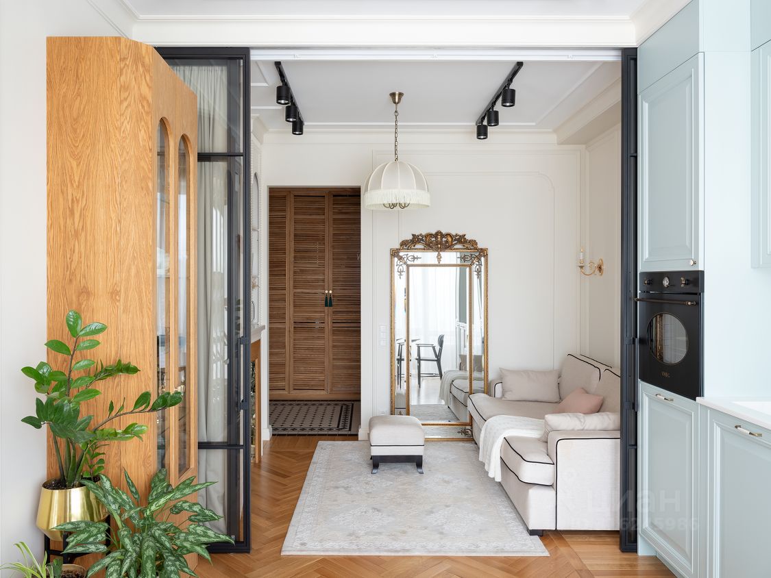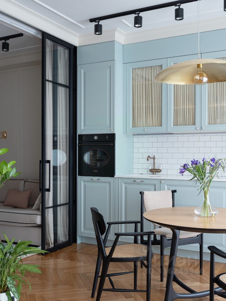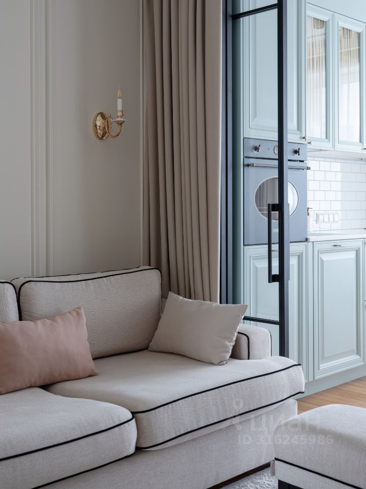 В жилом квартале ''LIFE-Кутузовский'' к продаже предлагается современная двухкомнатная квартира с ремонтом по уникальному проекту от именитого архитектора-дизайнера. Дизайнеру удалось создать в новостройке квартиру с атмосферой истории и комфортной функциональной планировкой: кухня-гостиная разделена стеклянными перегородками, которые дополнительно можно закрыть портьерами и использовать комнату как гостевую, изолированная спальня в которую можно попасть как из кухни, так и из прихожей через удобную гардеробную. Налет стиля ретро в интерьере создает элегантная лепнина и паркет английской елочкой из тонких плашек. Романтичный образ квартиры также подчеркивает нежно-голубая кухня со стеклянными фасадами.