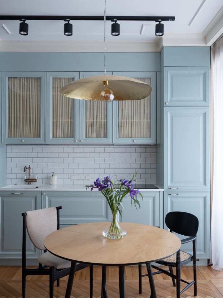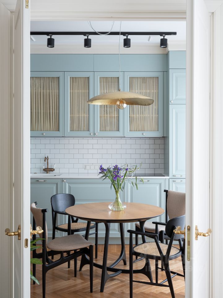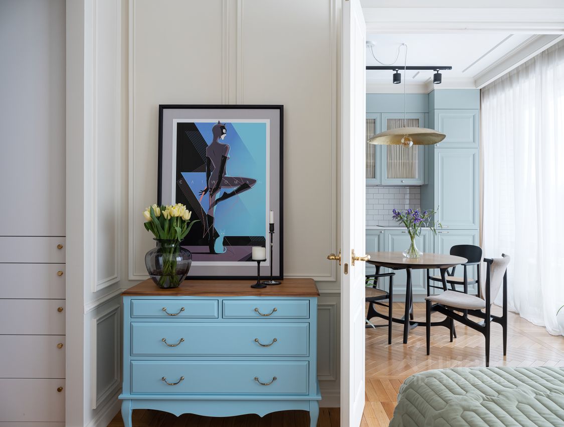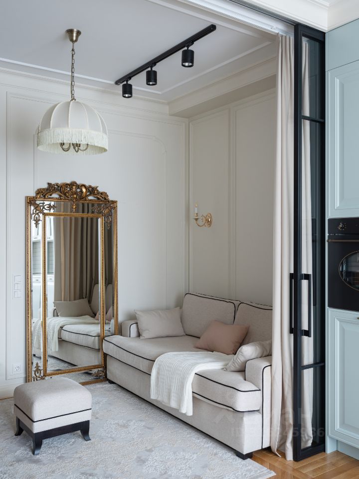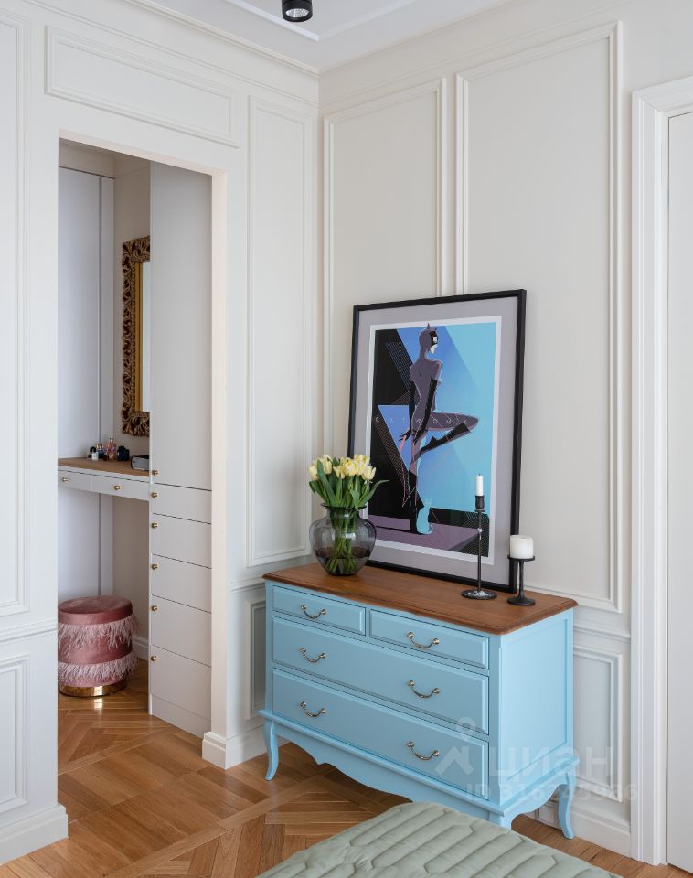 В жилом квартале ''LIFE-Кутузовский'' к продаже предлагается современная двухкомнатная квартира с ремонтом по уникальному проекту от именитого архитектора-дизайнера. Дизайнеру удалось создать в новостройке квартиру с атмосферой истории и комфортной функциональной планировкой: кухня-гостиная разделена стеклянными перегородками, которые дополнительно можно закрыть портьерами и использовать комнату как гостевую, изолированная спальня в которую можно попасть как из кухни, так и из прихожей через удобную гардеробную. Налет стиля ретро в интерьере создает элегантная лепнина и паркет английской елочкой из тонких плашек. Романтичный образ квартиры также подчеркивает нежно-голубая кухня со стеклянными фасадами.