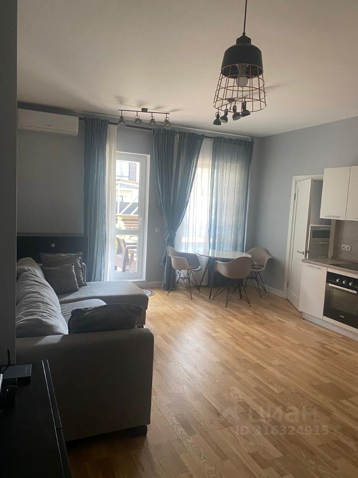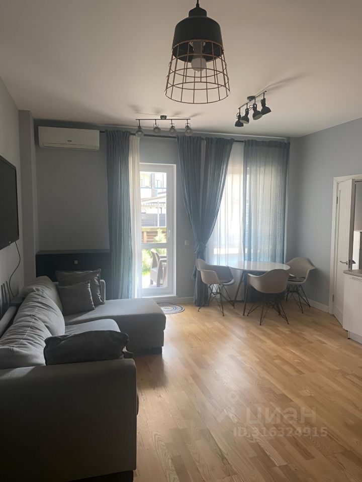 Квартира с евроремонтом и современной мебелью в комнате. На просторной кухне площадью 20 кв. м есть вся необходимая техника: кондиционер, холодильник, посудомоечная машина, телевизор и стиральная машина. Планировка включает две совмещенные ванные комнаты, одна из которых оборудована ванной. В квартире есть терраса.