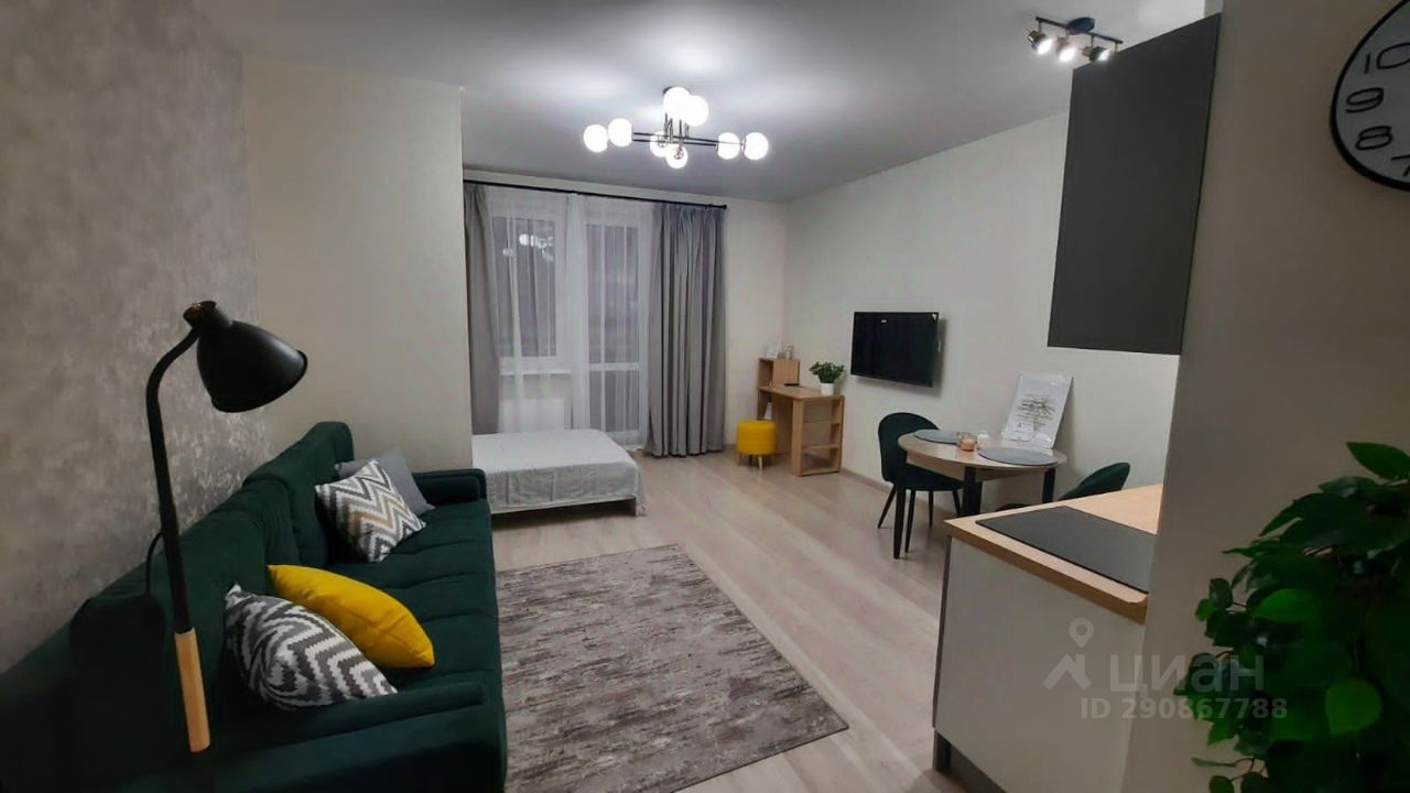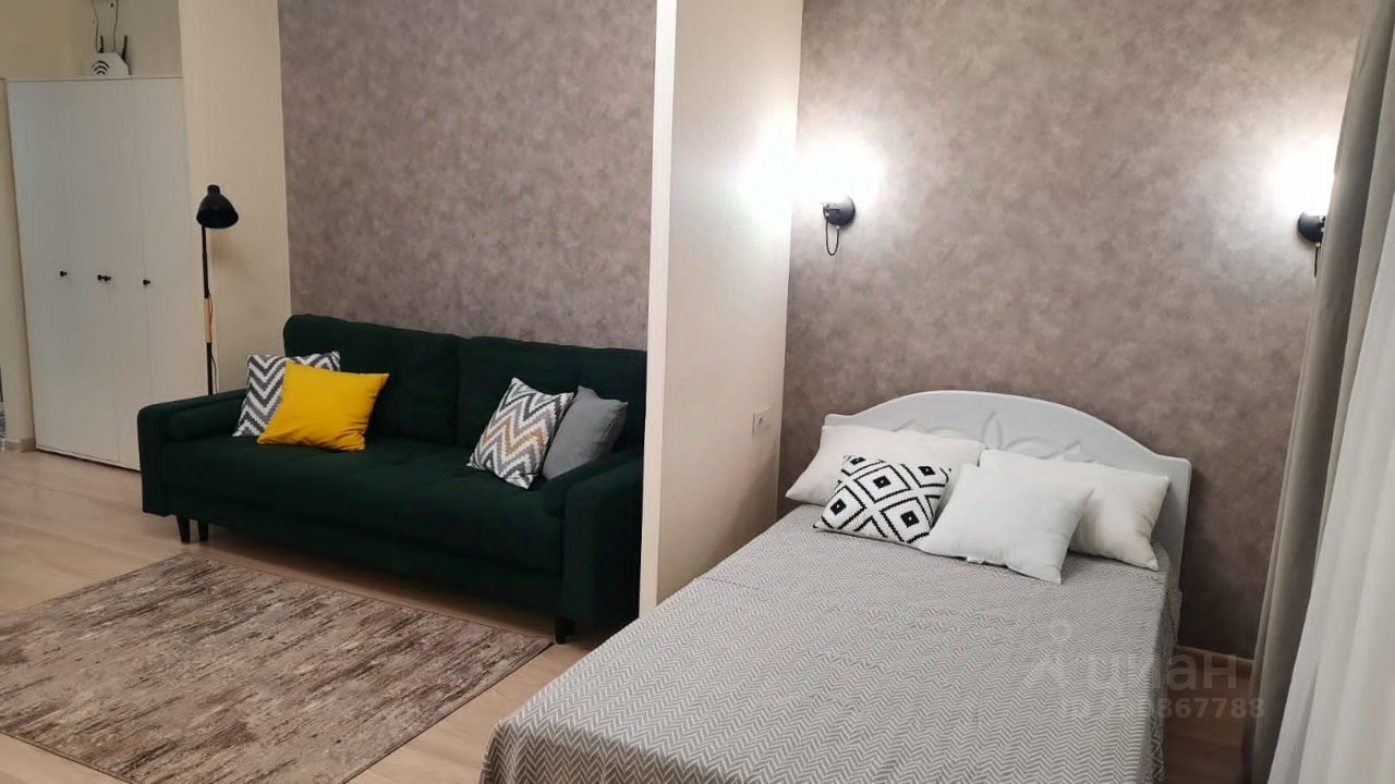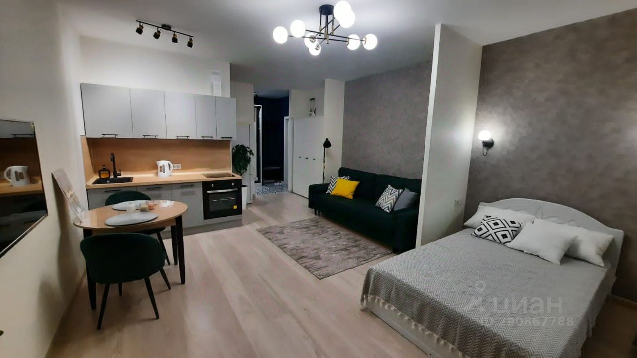 Сдается уютная, светлая просторная (34м2) студия с новой мебелью и техникой! Дом монолитный, 2020 года. В квартире установлена вся необходимая для комфортного проживания мебель: два шкафа для одежды, кровать и двухспальный диван, кухонный гарнитур, стиральная машина, телевизор, оборудовано рабочее место, проведен интернет. Чистый подъезд. В подъезде консьерж и видеонаблюдение.