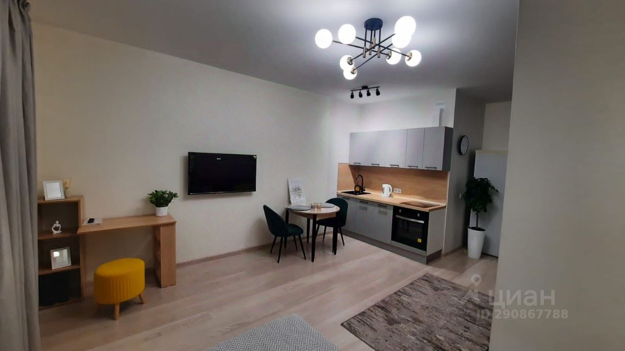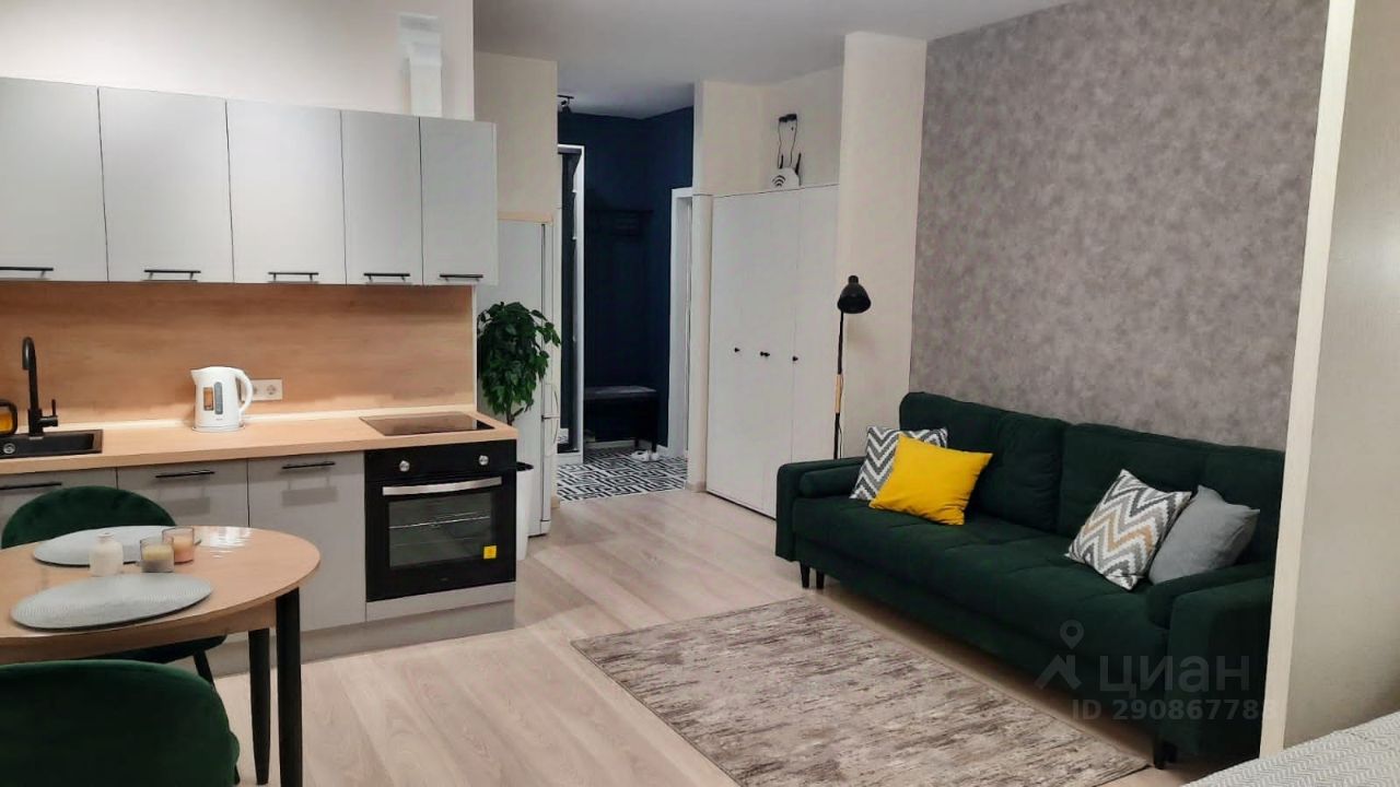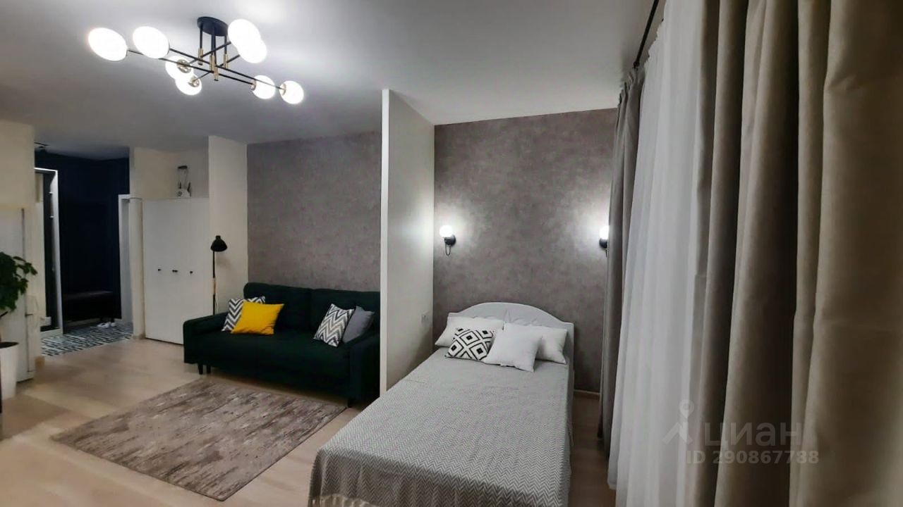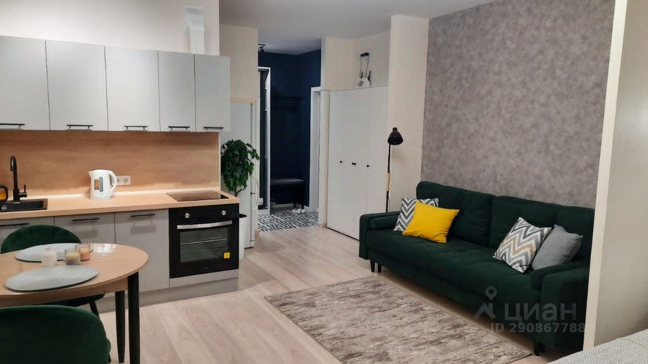 Сдается уютная, светлая просторная (34м2) студия с новой мебелью и техникой! Дом монолитный, 2020 года. В квартире установлена вся необходимая для комфортного проживания мебель: два шкафа для одежды, кровать и двухспальный диван, кухонный гарнитур, стиральная машина, телевизор, оборудовано рабочее место, проведен интернет. Чистый подъезд. В подъезде консьерж и видеонаблюдение.