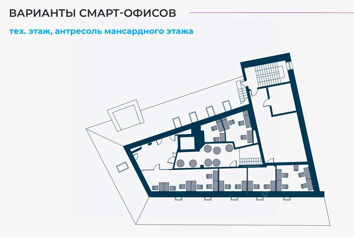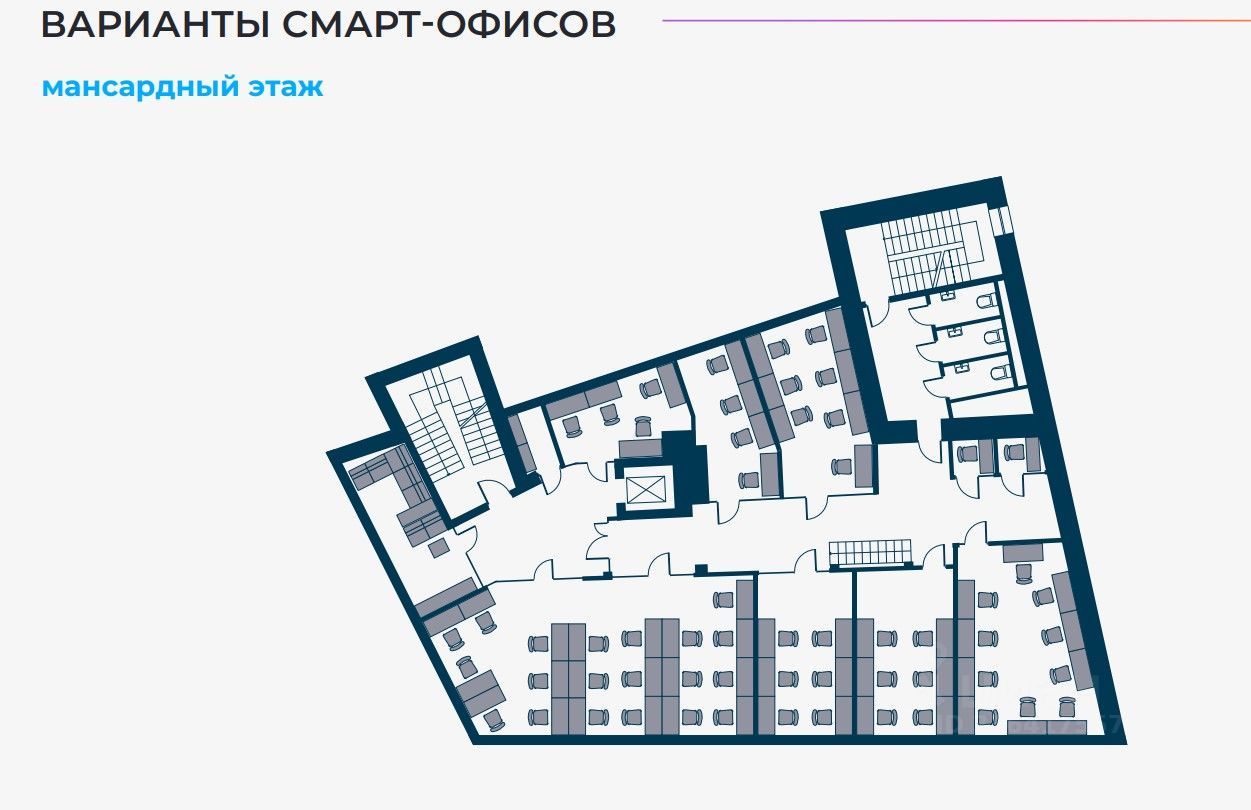 Стильное офисное пространство меблировано и полностью оборудовано под потребности бизнеса, смешанная планировка (210 рабочих мест).