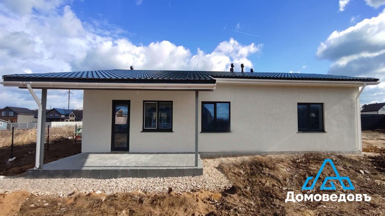 - Фундамент утепленная шведская плита (УШП). - Крыша металлочерепица, снегозадержатель, водоотведение с кровли. - Стены внутри: штукатурка, стеклохолст, шпатлевка, краска/обои/керамогранит в санузле, снаружи: цементная штукатурка, стеклотканевая сетка, декоративное покрытие ''Короед'', фасадная краска. - Пол керамогранит в прихожей, коридоре, санузлах и кухне-гостиной, ламинат в комнатах. - Потолок натяжной, матовый. - Металлическая входная дверь с терморазрывом, деревянные межкомнатные двери, двухкамерные стеклопакеты поворотно-откидные.