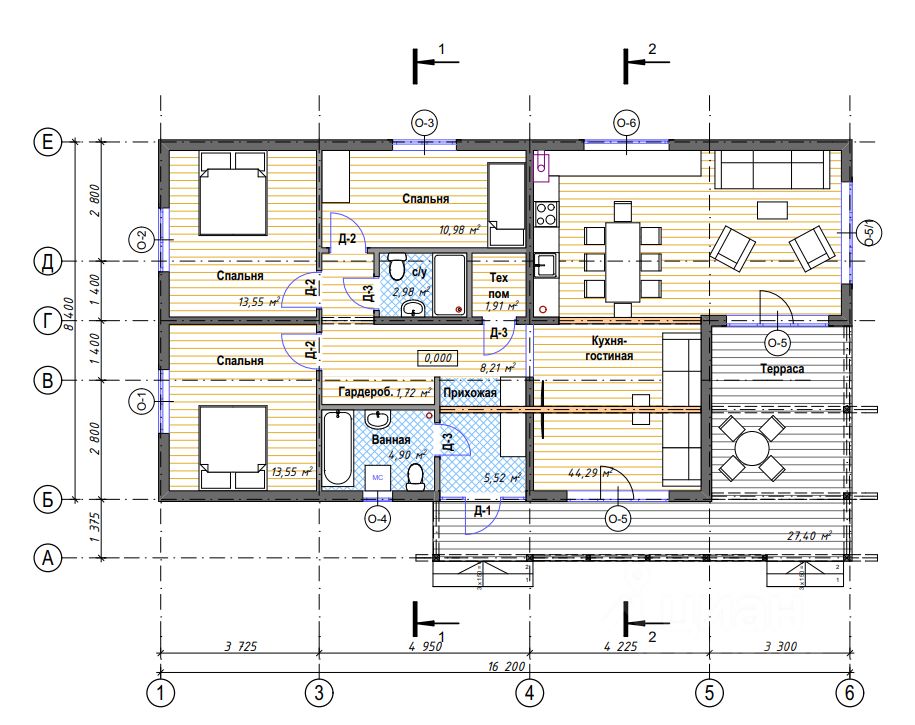 Уютный одноэтажный дом с тремя спальнями