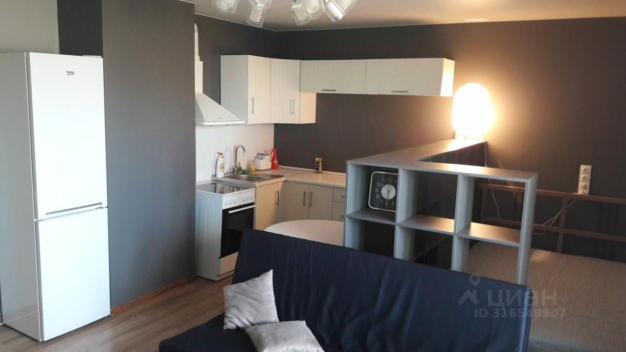 Просторная квартира-студия общей площадью 36 кв.м. Комната 25 кв.м. разделена на две зоны, есть просторный застеклённый балкон, прихожая с вместительным шкафом. Квартира оборудована всей необходимой мебелью и техникой. У дома свой внутренний двор со въездом через шлагбаум. Дом граничит с оврагом, с березовой рощей . У дома идет строительство большого ТЦ. Без комиссии!!!