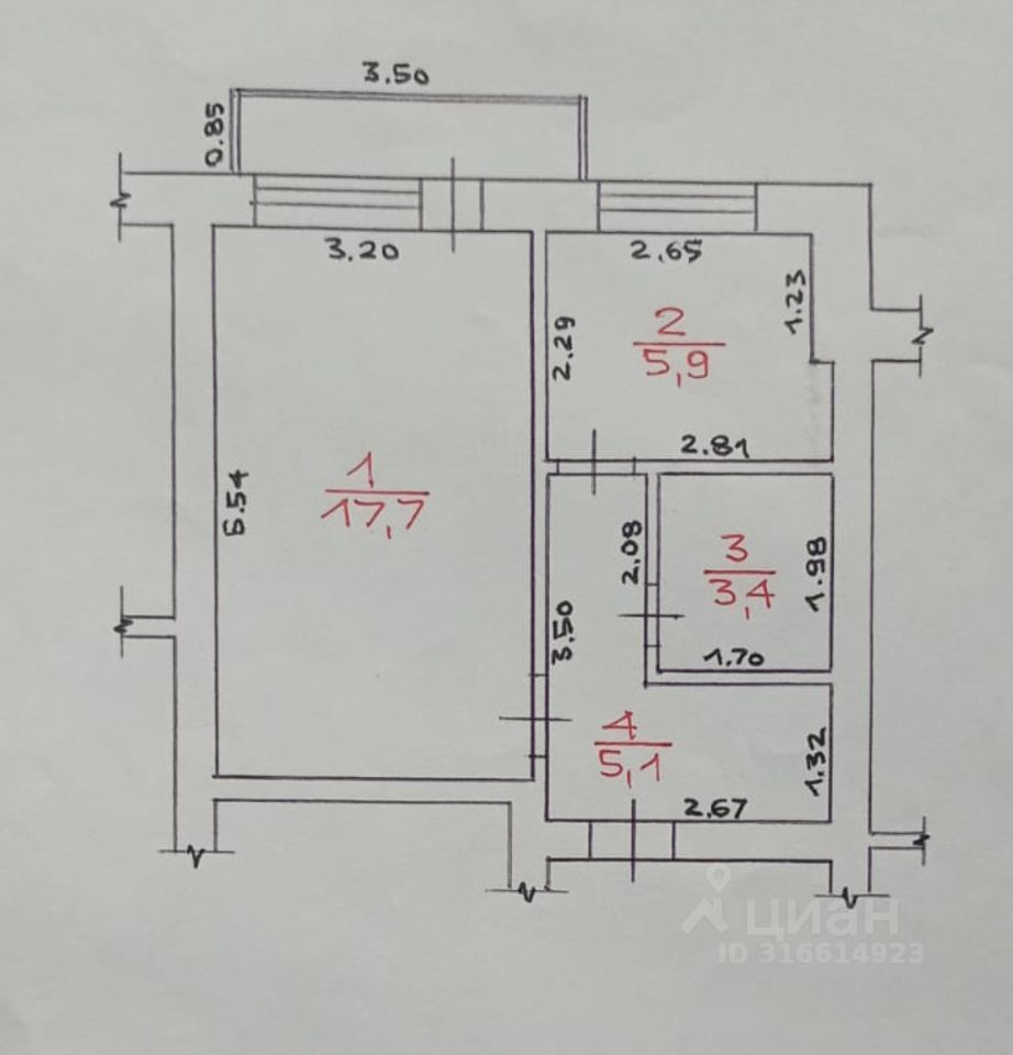 Хорошее состояние, большой балкон, окна выходят во двор.