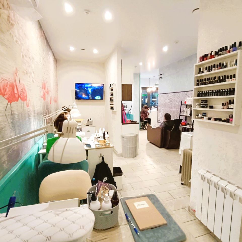 Ремонт: стильный свежий ремонт, высокие потолки, пожарные коммуникации, кондиционеры, видеонаблюдение, мокрые точки. Рабочие места: - ресепшен и место ожидания, - 3 рабочих мест парикмахеров, - 3 рабочих мест по маникюру, - 3 места для педикюра, - 1 место визажиста, - 1 кабинет массажа или косметологии в отдельной комнате, - комната отдыха персонала, - сан. узел. Оборудование: салон полностью оснащен для работы, есть расходные материалы, из оборудования: кушетки, маникюрные столы с пылесосом, стерилизаторы, аппараты для маникюра, лампы мастеров, педикюрные кресла, кресла мастеров и клиентов, кондиционер, видео камеры, компьютер, кофемашина и три телевизора.
