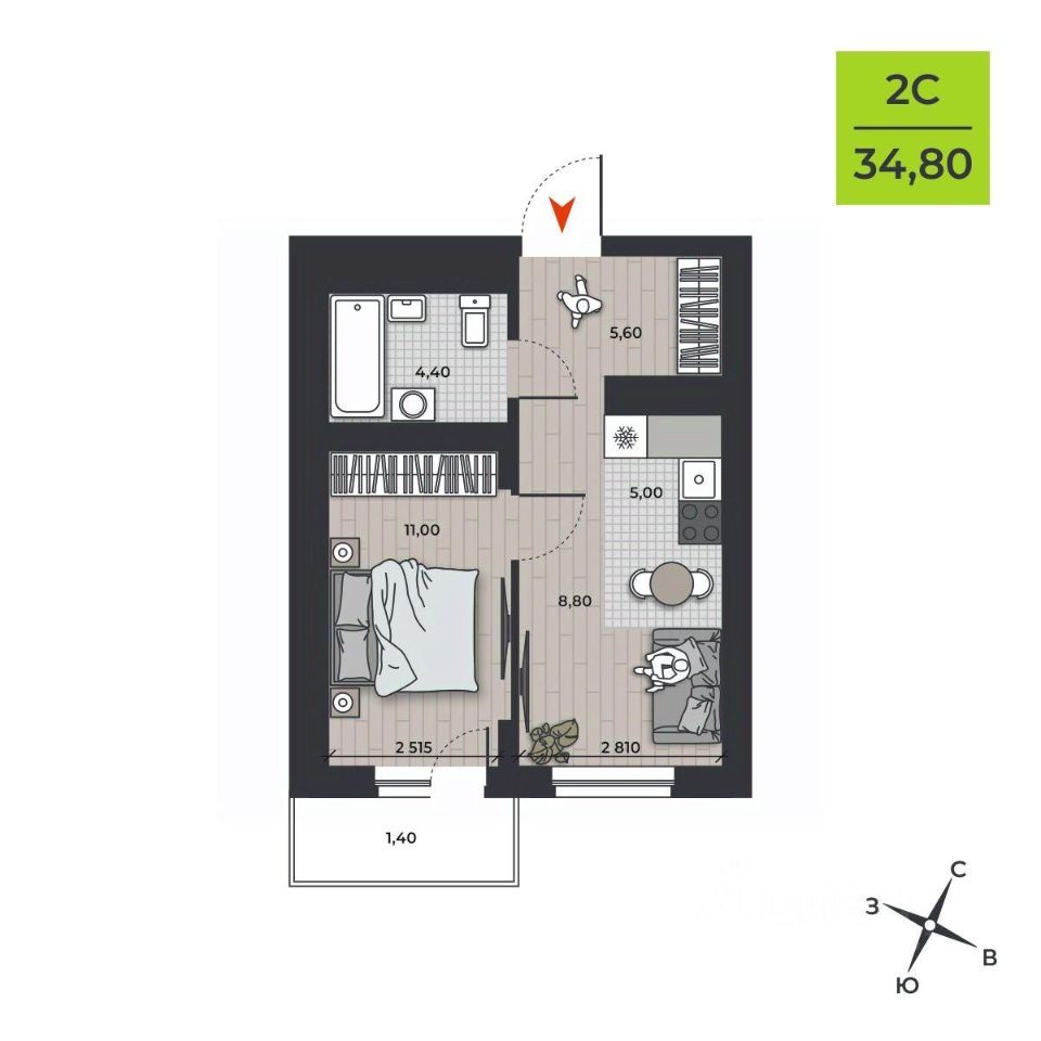 продам 2-к, Курчатова, 16 стр.4 998 000 ₽