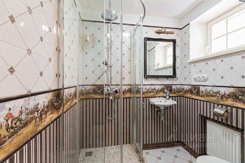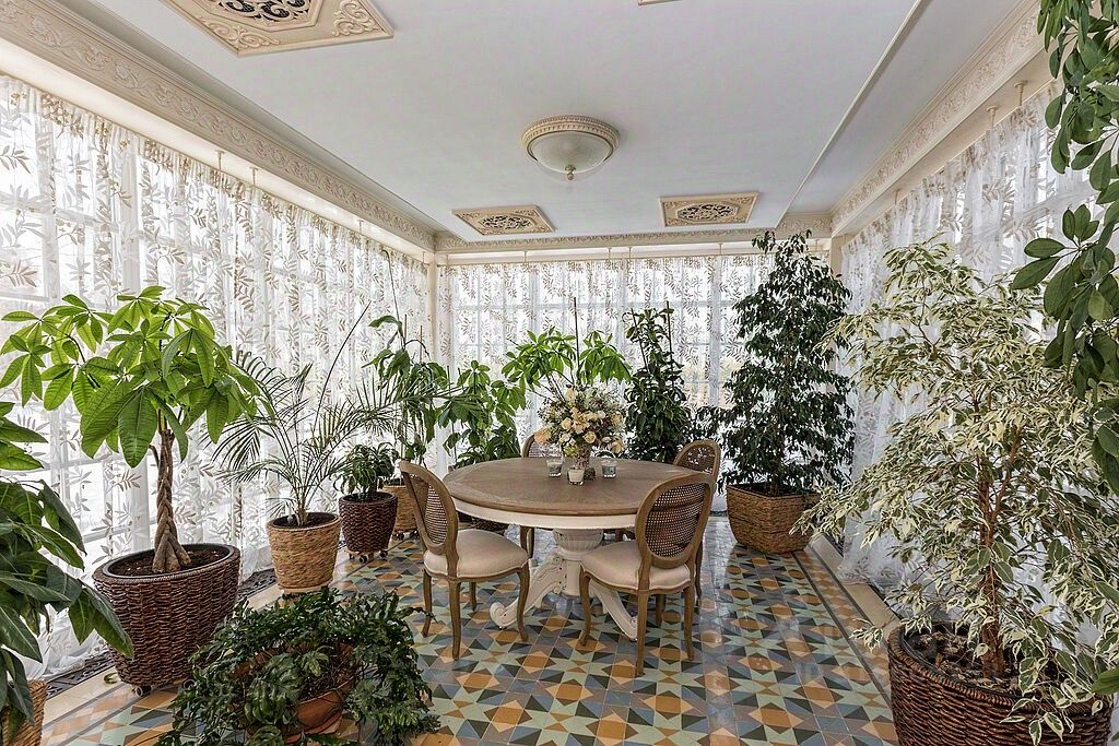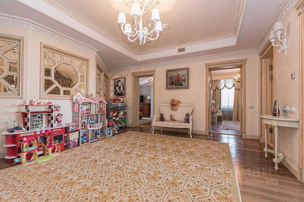 В доме четыре спальни, две из которых с отдельными санузлами, большой кабинет, просторная детская, оформленная в морском стиле, оранжерея с разными видами кустов и деревьев, винная комната.