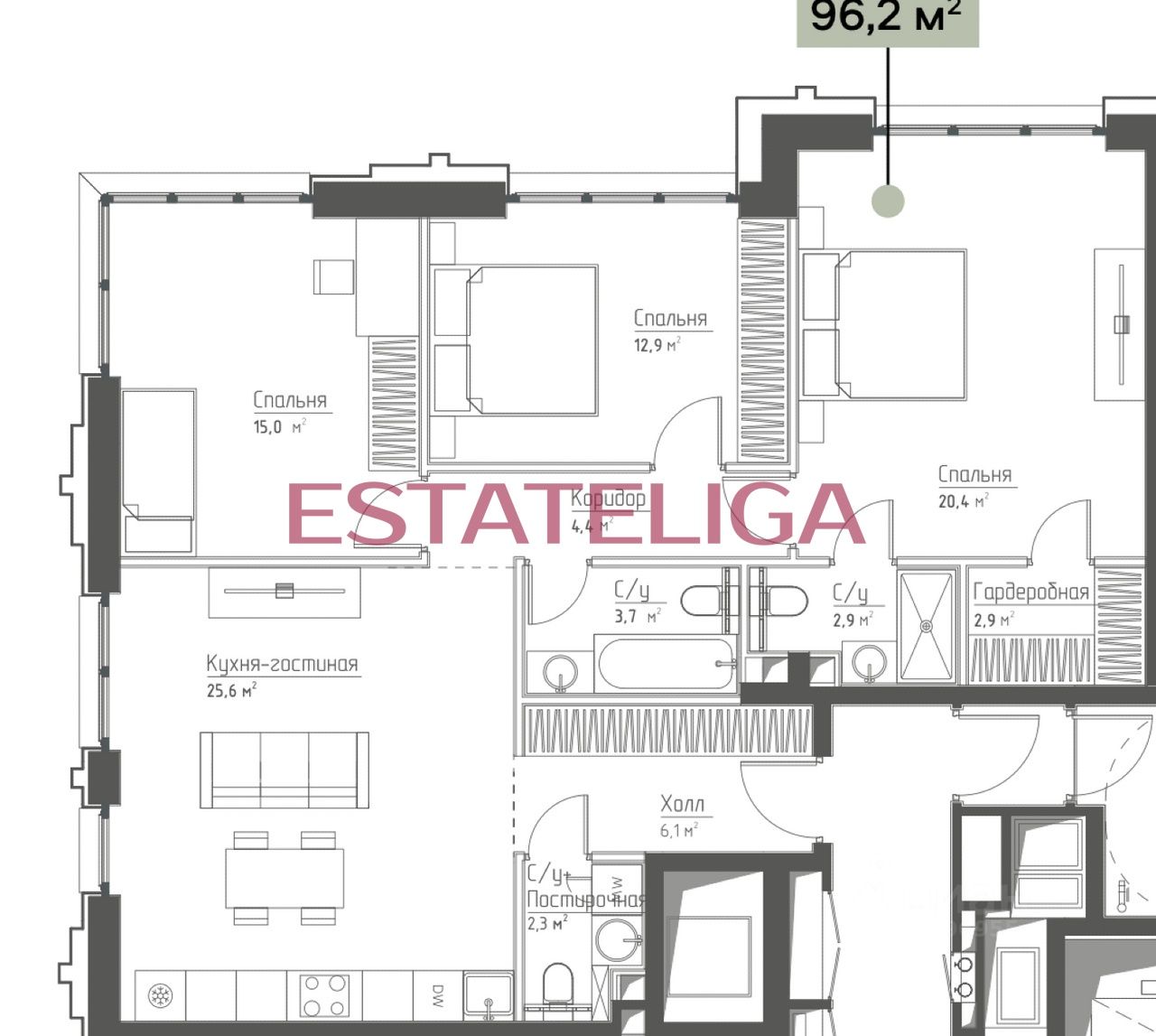 Продается трехкомнатная квартира в Жилом Комплексе Бизнес-класса ''Павелецкая Сити'' Отделка от застройщика (WhiteBox). Удачная планировка.