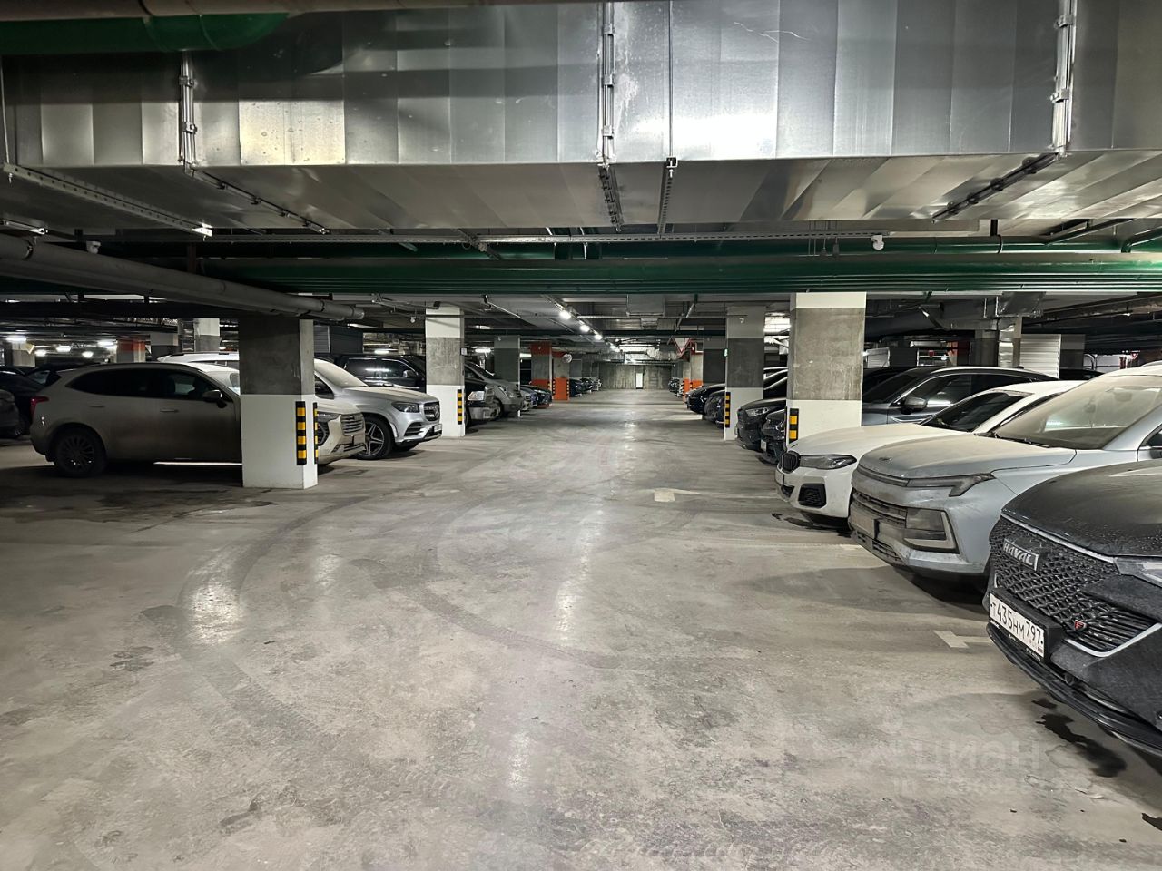 Идеальное расположение широкое машиноместо в подземном отапливаемом и хорошо освещаемом, охраняемом паркинге.