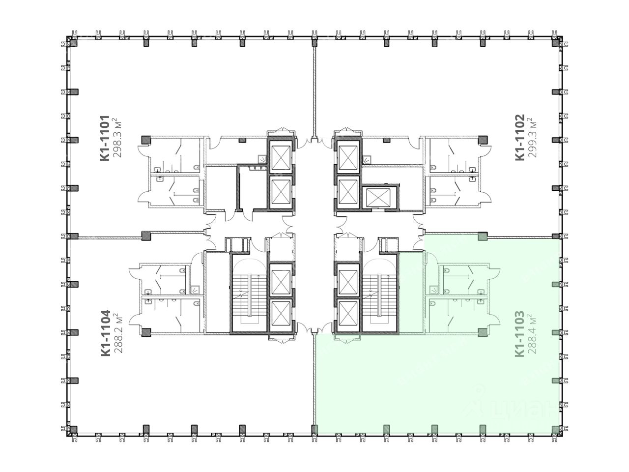 Офисное помещение 288.4 кв. м в бизнес-центре ''STONE Калужская К1''. Прямая продажа, без комиссии. Объект на стадии активного строительства, готовность ко въезду уточняется по запросу.