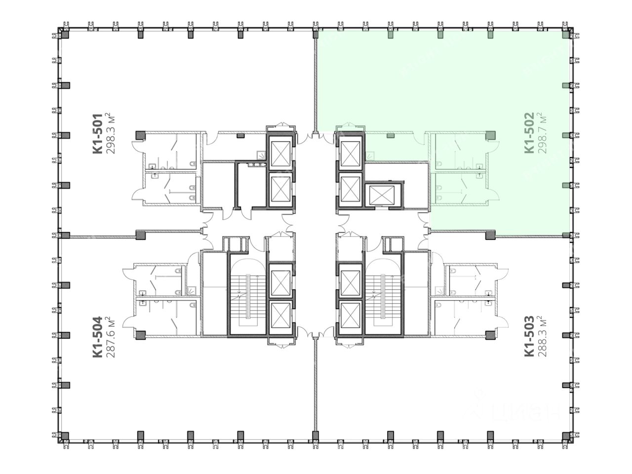 - Размер типового этажа: 1300,