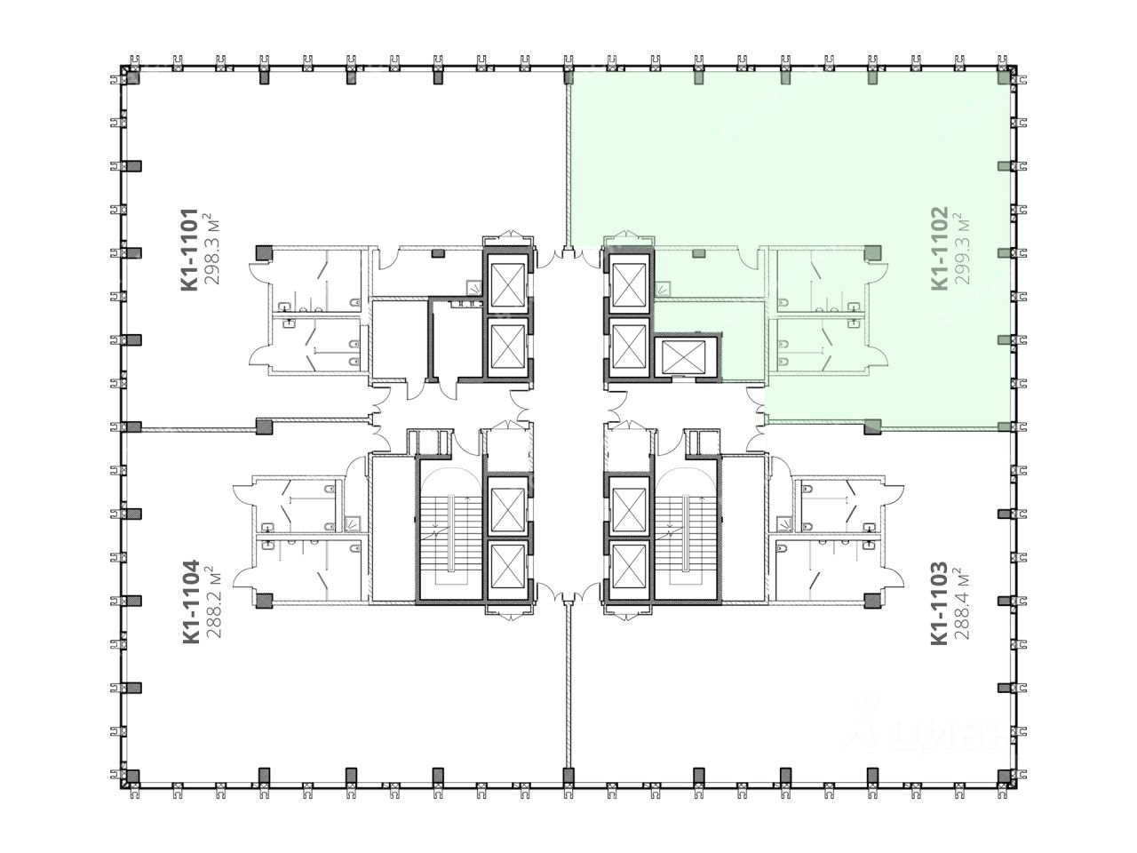 - Размер типового этажа: 1300,
