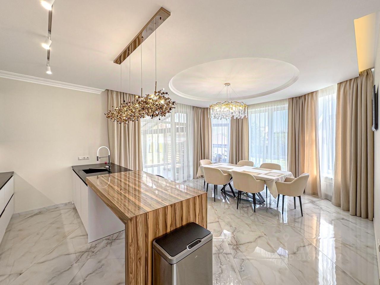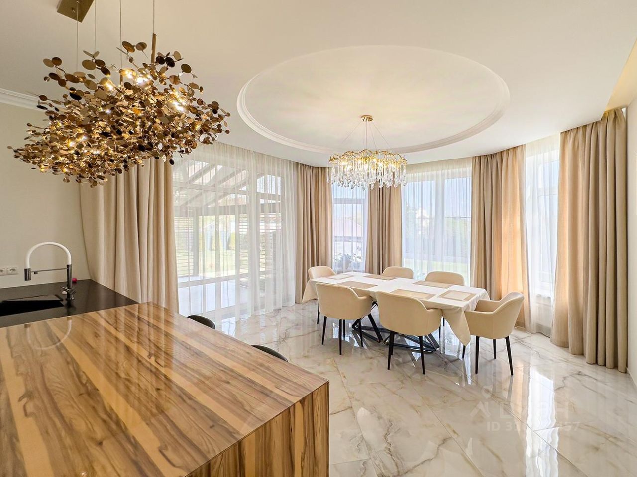Современная кухонная мебель Giulia Novars | Элитные кухни, фасады и остров натуральный шпон палисандр, техника KPPERSBUSCH. Для внутренней отделки дома использовались дорогостоящие натуральные материалы - мрамор, керамическая плитка, гипсовые панели. Дровяной камин облицован натуральным мрамором. Корпусная и мягкая мебель премиум класса Giulia Novars, Balito, Klever. В доме есть отдельная комната для персонала со своим входом.