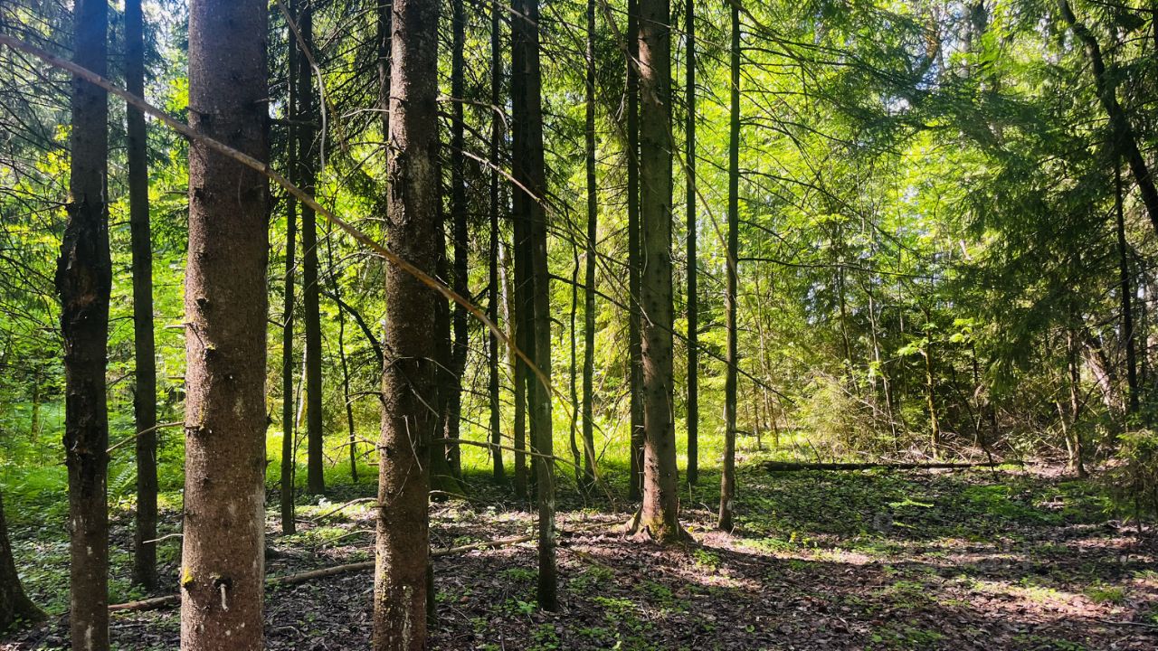 Продаю 24,33 сотки с богатым лесом в КП Шустово, Дмитровский район, 50 км от Москвы. Вековые хвойные деревья. Асфальтовый заезд. Собственный выход в лес.