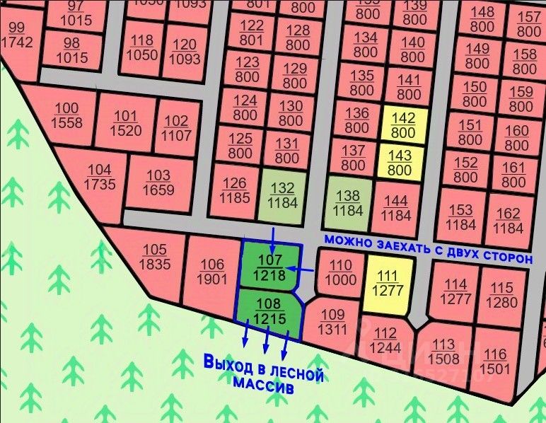 Общая площадь: 24,33 сотки состоит из двух участков. Участки продаются вместе. Отдельно можно приобрести уч.107.