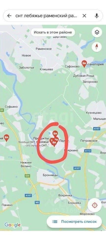 Расположение и инфраструктура: - Участок находится в современном садовом товариществе ''Лебяжье'' - Удобные подъездные пути с автоматическими воротами - Расстояние от МКАД: 47 км по Быковскому шоссе или 51 км по Новорязанскому шоссе - Ближайшие населенные пункты: Раменское, Ипподром, Фабричная - Рядом расположено озеро для купания и Москва-река - В округе - популярные грибные места