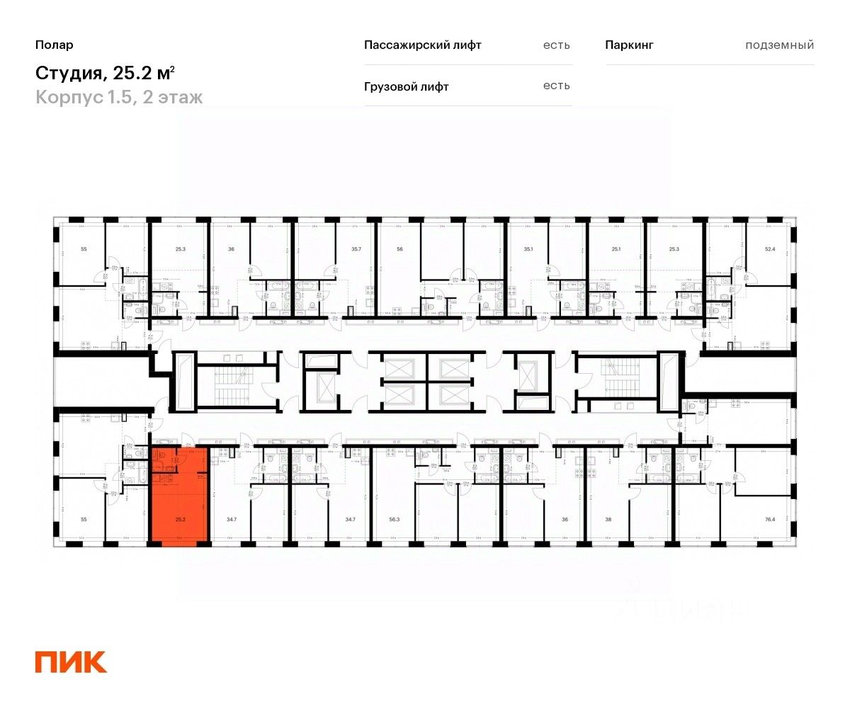 Продаётся квартира-студия площадью 25,2 кв.м на 2 этаже 50 этажного дома (Корпус 1.5, Секция 2) проекта ПИК Полар. Светлый просторный подъезд на уровне земли, функциональная планировка, большие окна, предчистовая отделка.