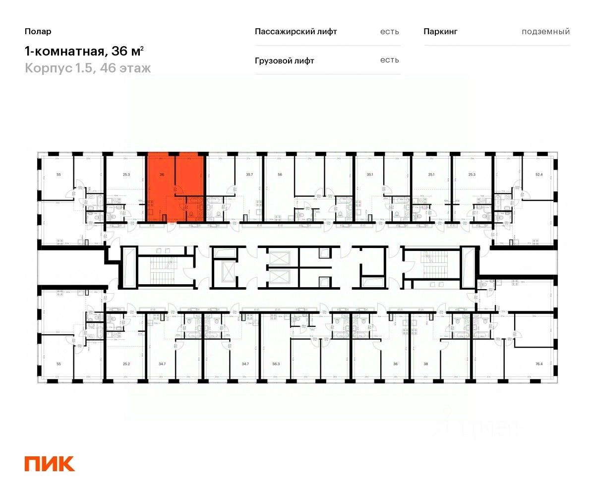 Продаётся 1-комн. квартира площадью 36 кв.м на 46 этаже 50 этажного дома (Корпус 1.5, Секция 2) проекта ПИК Полар. Светлый просторный подъезд на уровне земли, функциональная планировка, большие окна, предчистовая отделка.
