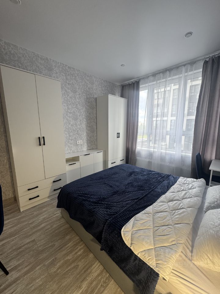 В квартире выполнен дизайнерский ремонт, который создает атмосферу уюта и комфорта. В комнате и на кухне есть вся необходимая мебель. Кухня оснащена всей необходимой техникой ,а в ванной комнате установлена душевая кабина и стиральная машина. Окна выходят во двор, поэтому здесь тихо и спокойно.
