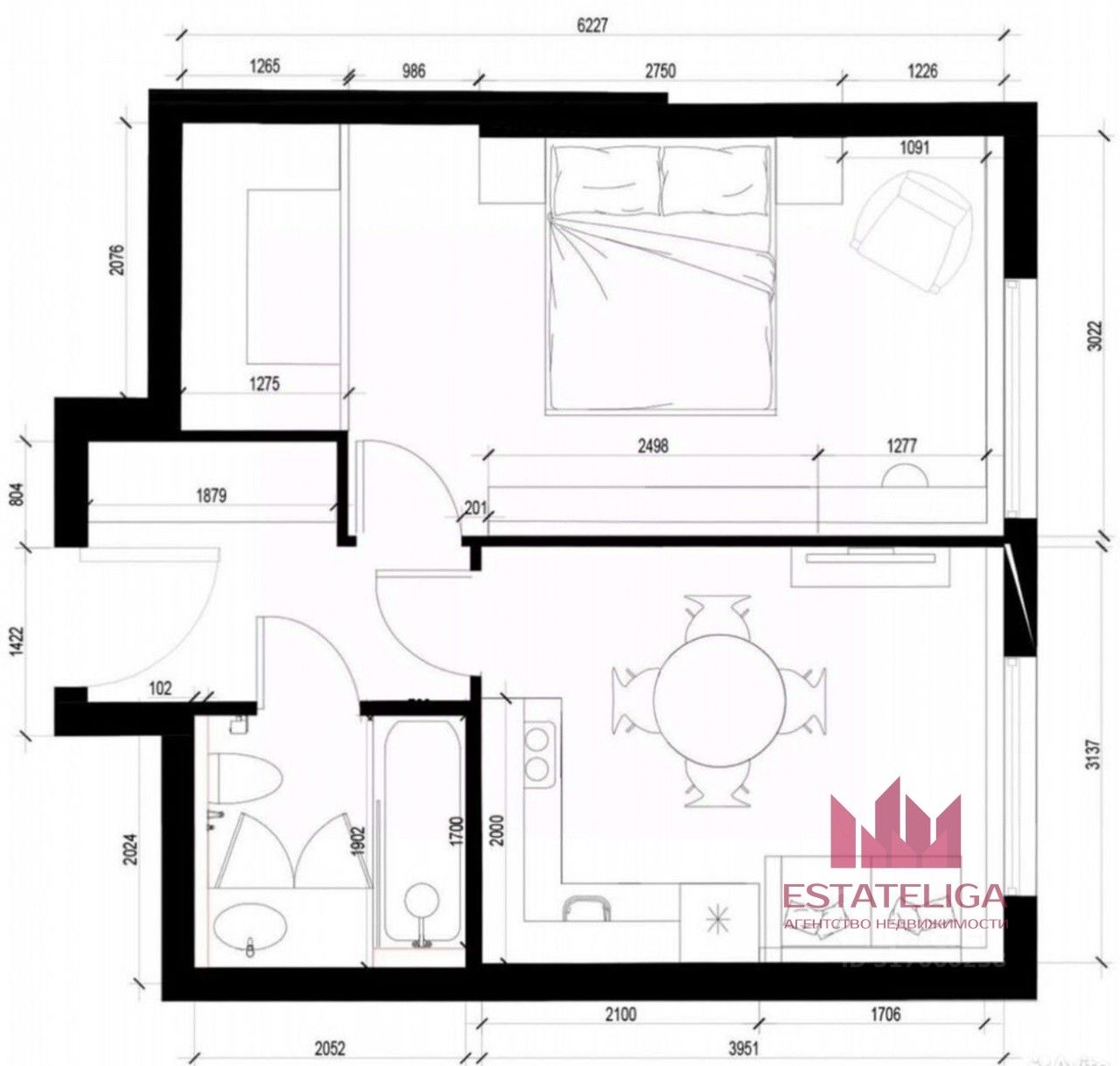Id 52882. Однокомнатная квартира. Изолированная спальня, просторная кухня-гостиная и санузел. Есть дизайн проект. В квартире возведены стены и проведены коммуникации.
