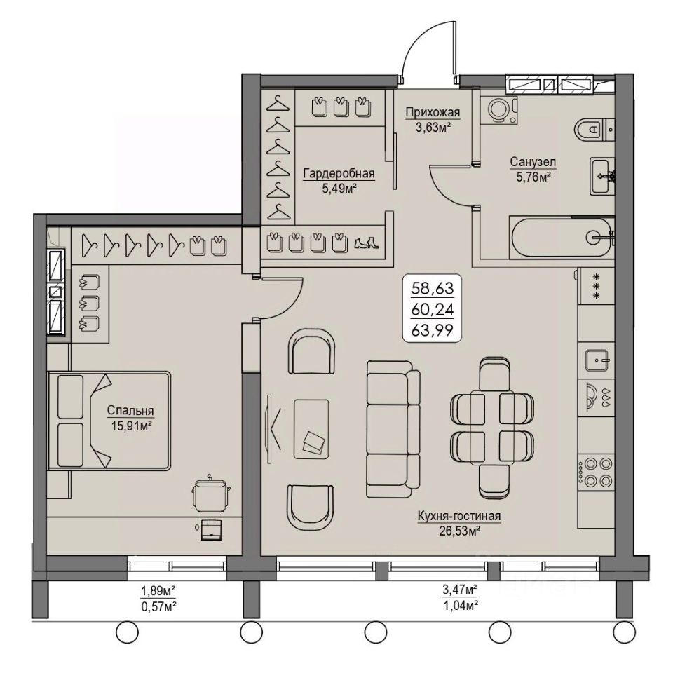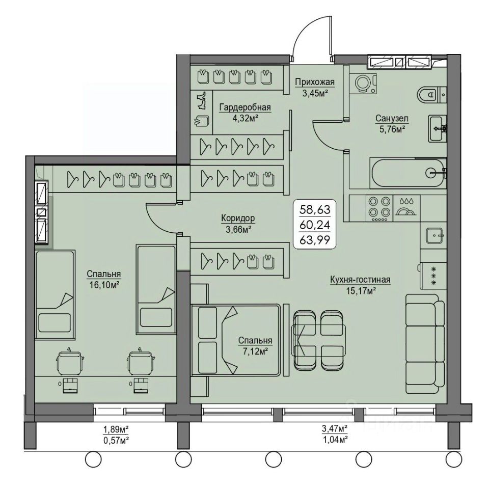Общая площадь60,24 м2