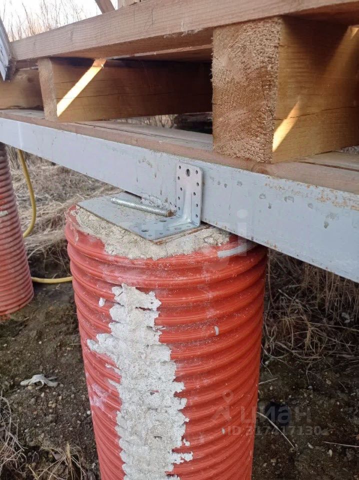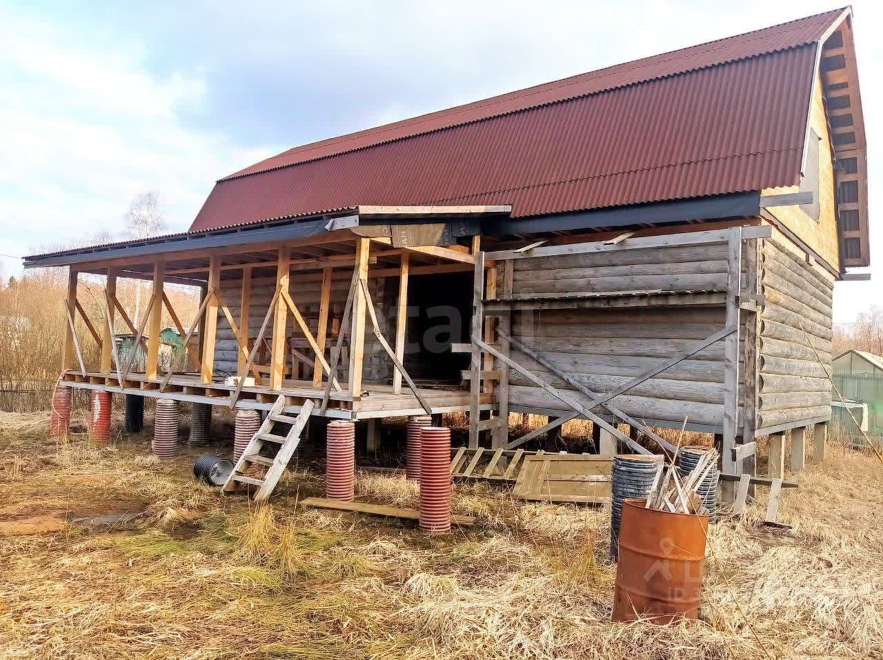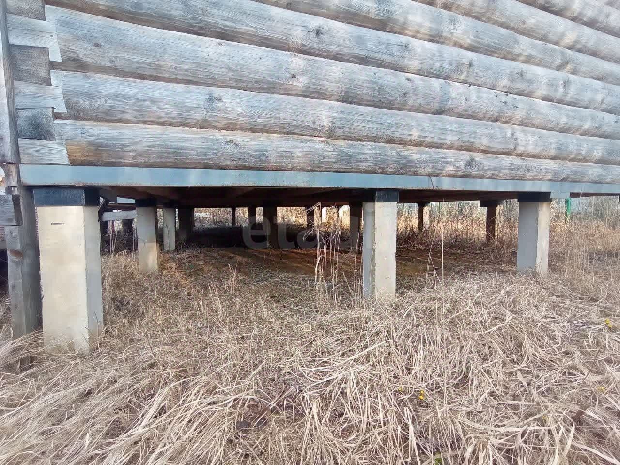 Дом стоит на сваях, цельный брус.
