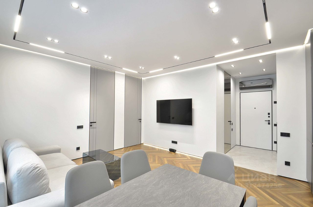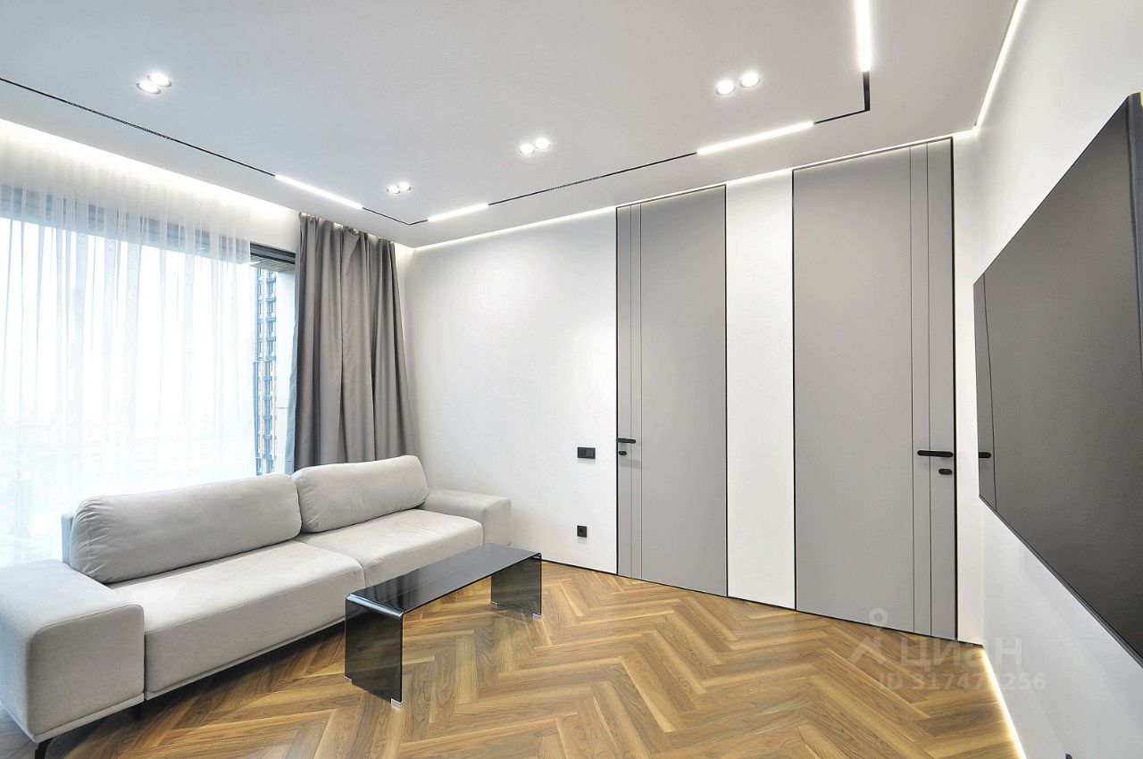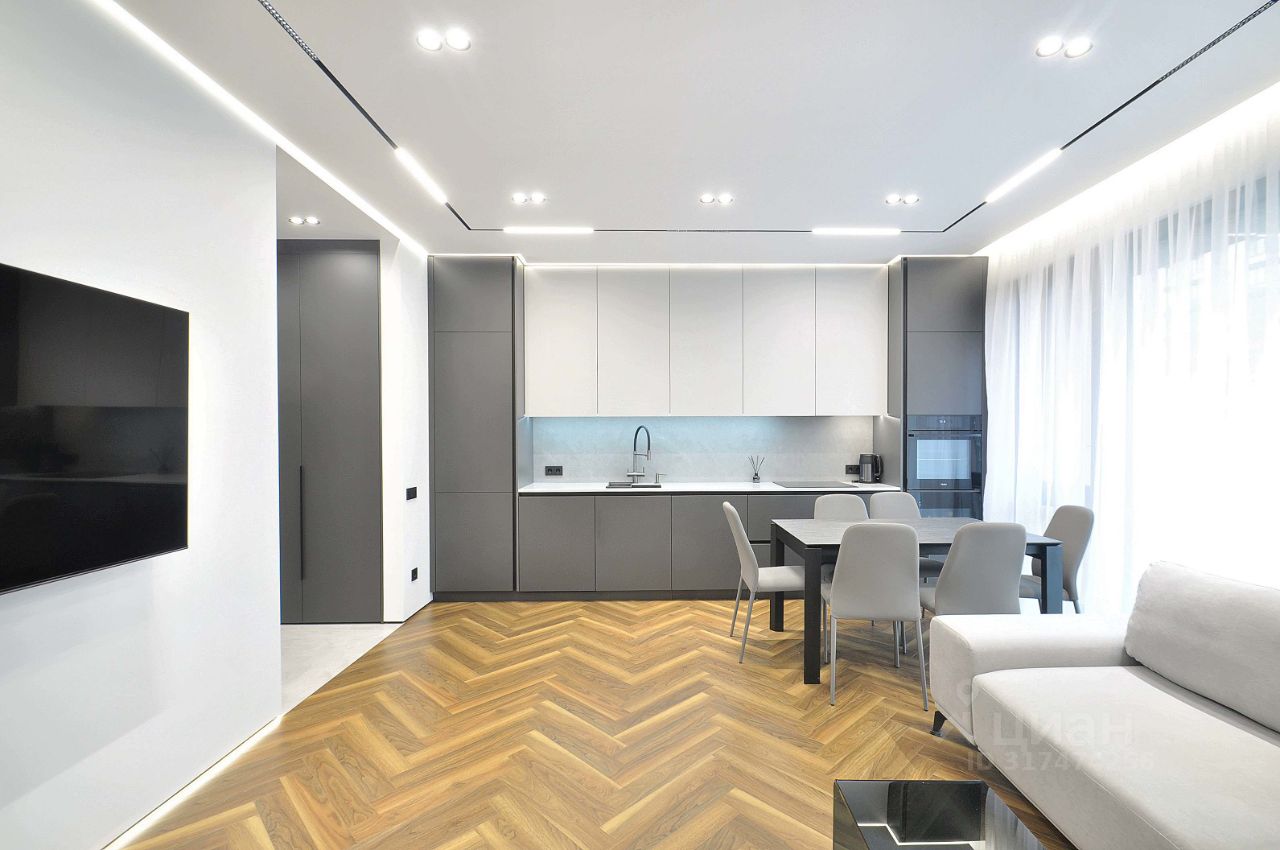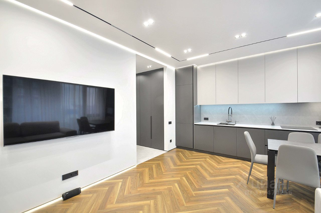 В квартире сделан дизайнерский ремонт (делали для себя), что придаёт ей уникальную атмосферу уюта и современности. Просторные комнаты обставлены мебелью, а на кухне есть всё необходимое для комфортного проживания. В квартире установлена техника: кондиционер, холодильник, посудомоечная и стиральная машины, телевизор, винный шкаф. Ванная комната оборудована душевой кабиной и совмещена с санузлом.