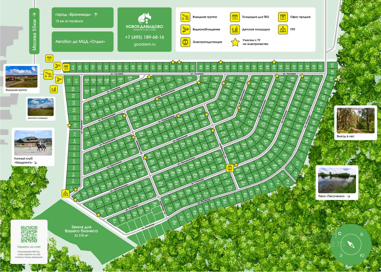 Почему стоит выбрать именно этот участок? Ровная и правильная форма участка — легко спланировать строительство дома и двора Экологически чистый район — свежий воздух и живописные пейзажи Доступность — удобная транспортная развязка и общественный транспорт из Москвы