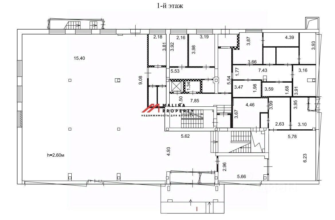 Первый этаж - 628,6 м2, второй этаж - 617,8 м2, подвал - 622,3 м2, отдельный вход, витрины, потолки 3 м, электрическая мощность 191 кВт. Земельный участок - 0.14 га включает в себя пятно застройки и прилегающую территорию, аренда на 49 лет до 2060 года.