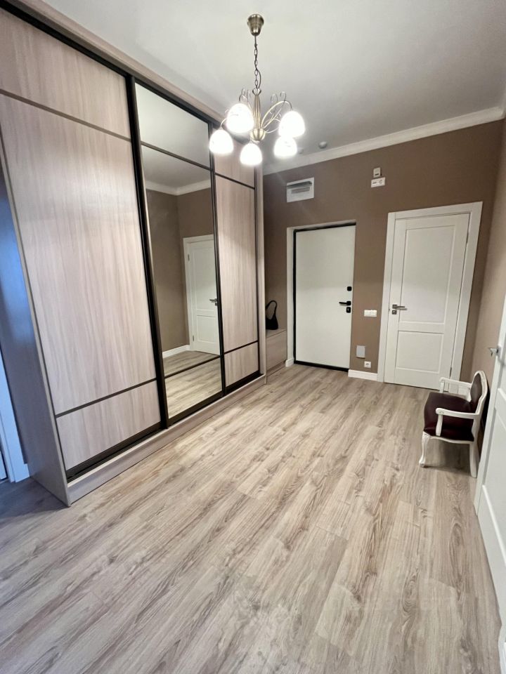 Сдается просторная и светлая двухкомнатная квартира 70м2. 3 с/у, один из которых в мастер-спальне. В прихожей большой и вместительный шкаф купе. Большая кухня с полупанорамным остеклением и лоджией. Окна выходят на две стороны. Вся мебель качественная из массива дерева. !!! Во второй комнате, которая пустая на фото, будет стоять диван (раскладывающийся). Отдельно с/у с ванной, отдельно с застекленным душем и третий гостевой с/у. Тихий закрытый двор с детской площадкой, есть подземный паркинг. Район новый, спокойный. Инфраструктура развита: в доме ВкусВилл, пятёрочка , рядом различные аптеки, магазины, салоны. Школа в 5 минутах пешком. Рядом зеленый массив. Свет и вода оплачиваются отдельно по счетчикам. Оперативный показ. Звоните по любым вопросам, рада буду помочь!