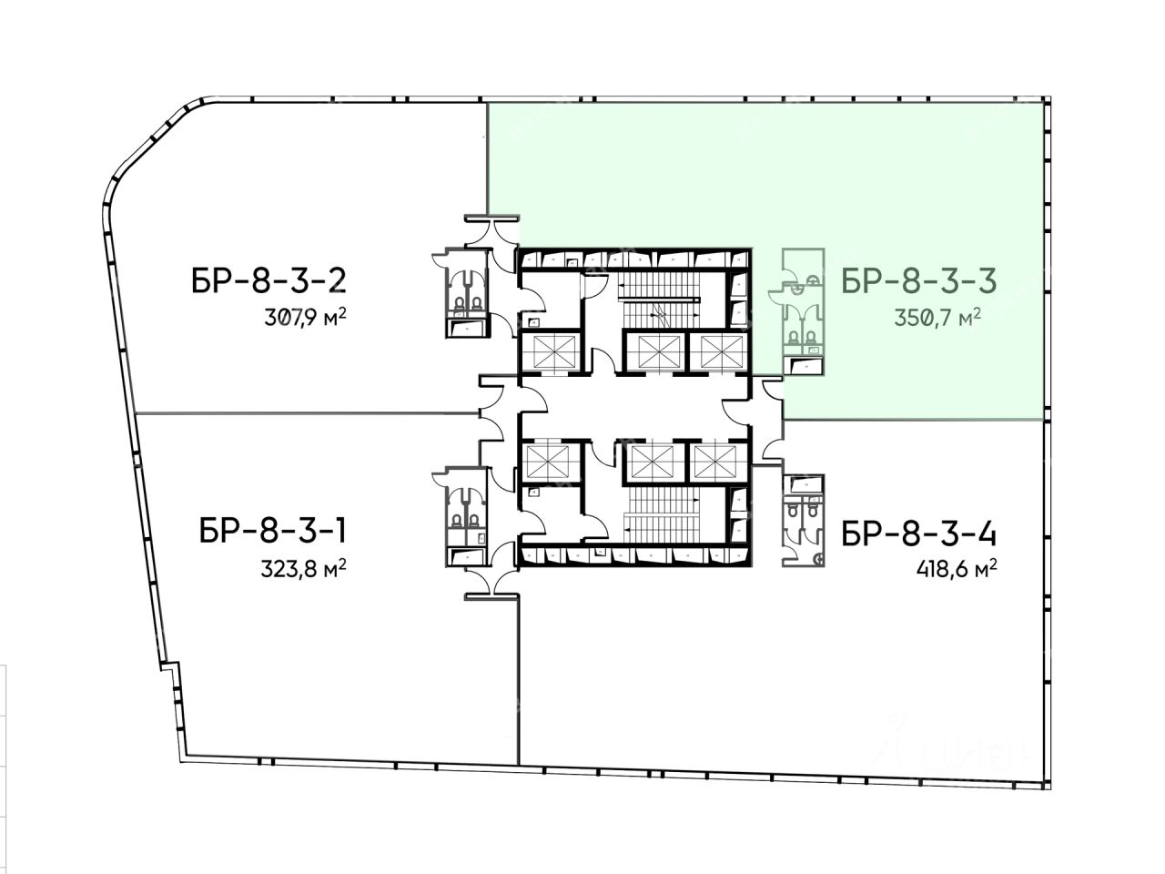 Офисное помещение 350.7 кв. м в бизнес-центре ''Башня Рябов''. Прямая продажа, без комиссии. Объект на стадии активного строительства, готовность ко въезду уточняется по запросу.