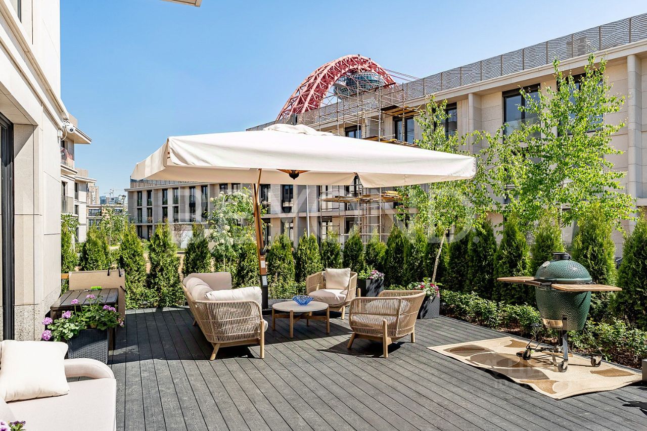 Клубные резиденции River Residences расположены в одном из самых зеленых районов столицы, на территории памятника природы регионального значения ''Серебряный Бор''. Архитектурный код комплекса гармонично встроен в природную среду этого исторического места. Сергей Чобан, возглавляющий архитектурное бюро SPEECH, с помощью текстур, четких линий, переходящих в мягкие, округлые рисунки, и цветовых решений подчеркнул аутентичность и приватность территории. Главным элементом в композиции ансамбля стал мраморизованный известняк из Португалии, украшенный неповторимыми орнаментами на тему гребли. Резиденции оборудованы зелеными технологиями, задача которых обеспечить комфорт и снизить воздействие на окружающую среду. Внедрена приточно-вытяжная система вентиляции, выполняющая очистку от пыли и подачу чистого воздуха комфортной температуры. Установлены система кондиционирования и панорамные окна с энергосберегающим покрытием. Трехэтажный таунхаус имеет общую площадь 235,8 кв. м. Продуманное планировочное решение позволяет организовать пространство с максимальным удобством за счет высоких потолков, большого количества окон и просторного холла. Кухня-столовая в американском стиле органично перетекает во вместительную гостиную. На втором и третьем этажах находятся спальни и комнаты, в которых можно обустроить рабочее место. Системы хранения предусматривают наличие двух кладовых и нескольких гардеробных комнат на каждом этаже. Имеются минимум три ванные комнаты. Окна выходят на три стороны: во внутренний двор комплекса и на невообразимый речной пейзаж Москвы-реки, находящейся в непосредственной близости. В таунхаусе предусмотрен выход из подземного паркинга с торца здания, также можно реализовать выход из резиденции. Клубные резиденции River Residences находятся в природном заповеднике ''Серебряный Бор''. Это свыше 330 гектаров соснового леса и водных просторов.