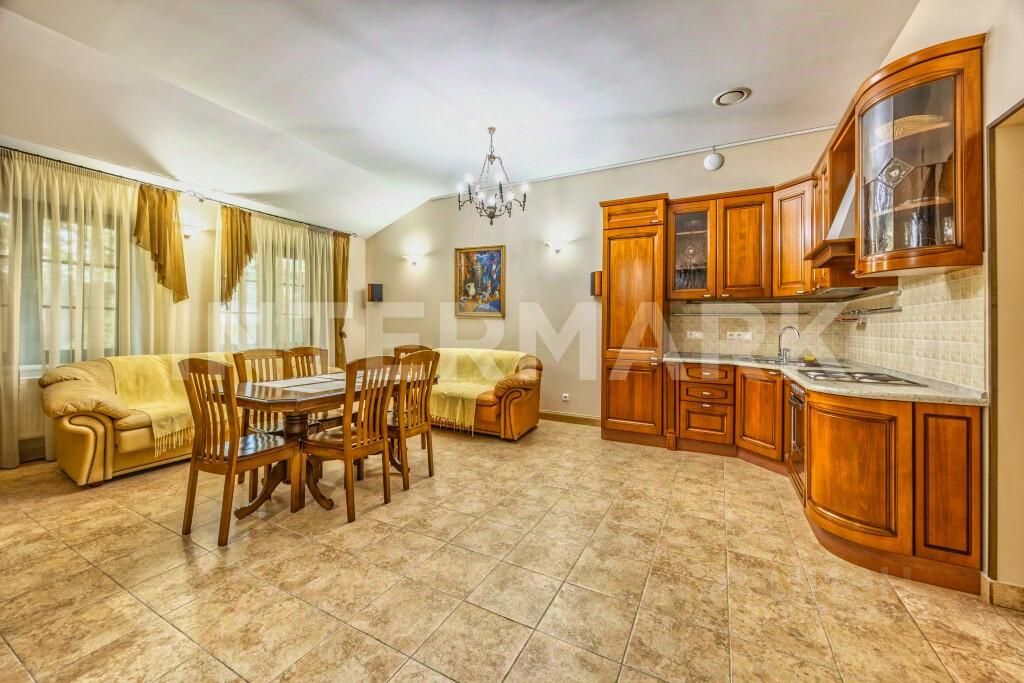 Дом 420 кв.м выполнен в классическом стиле. Резиденция полностью готова встретить новых владельцев. Покупатели непременно оценят качественный ремонт. Уют и атмосферу дополняют кирпичная кладка, паркет и теплые полы. В коттедже три уровня, четыре полноценные спальни, включая мастер-спальню с гардеробной и собственной ванной комнатой, кабинет-библиотека, светлая гостиная с камином и кухня-столовая. В цоколе обустроен большая зона для отдыха, сауна и джакузи.