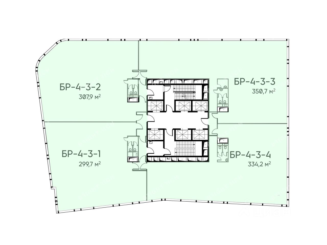 Офисное помещение 1 292.5 кв. м в бизнес-центре ''Башня Рябов''. Прямая продажа, без комиссии. Объект на стадии активного строительства, готовность ко въезду уточняется по запросу.