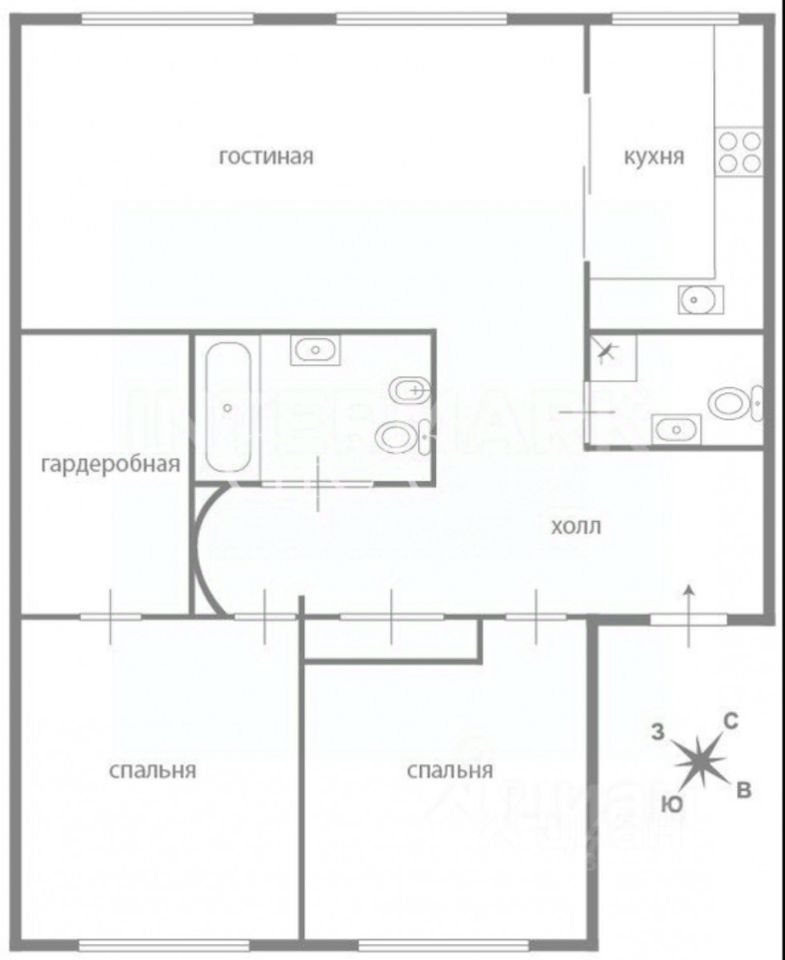 Планировка: 2 спальни, большая гардеробная комната, кухня-гостиная, 2 санузла.