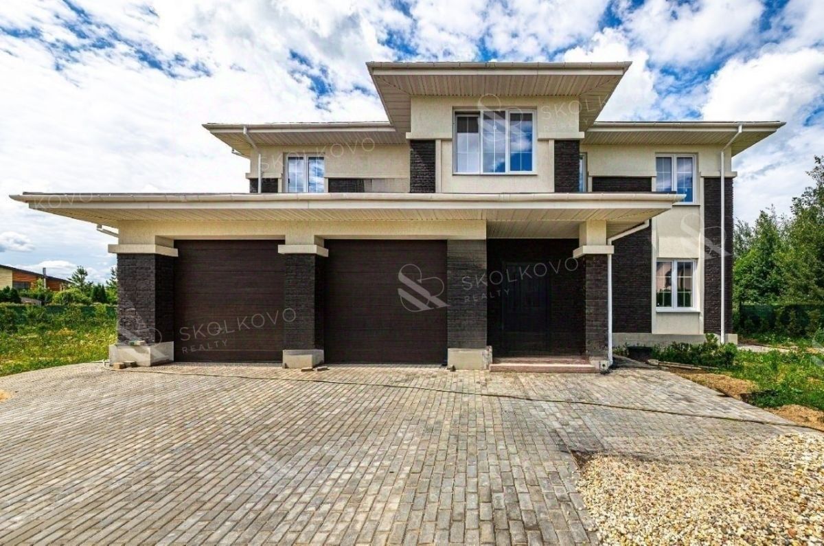 id: 550043 Продается новый загородный дом в коттеджном поселке Новорижский Этот стильный коттедж в архитектуре, вдохновленной Райтом, расположен в сердце охраняемого коттеджного поселка Новорижский, всего в 23 км от МКАД. Вы можете также приобрести дом в текущей степени готовности ''Shell and Core'' по цене 89 млн.